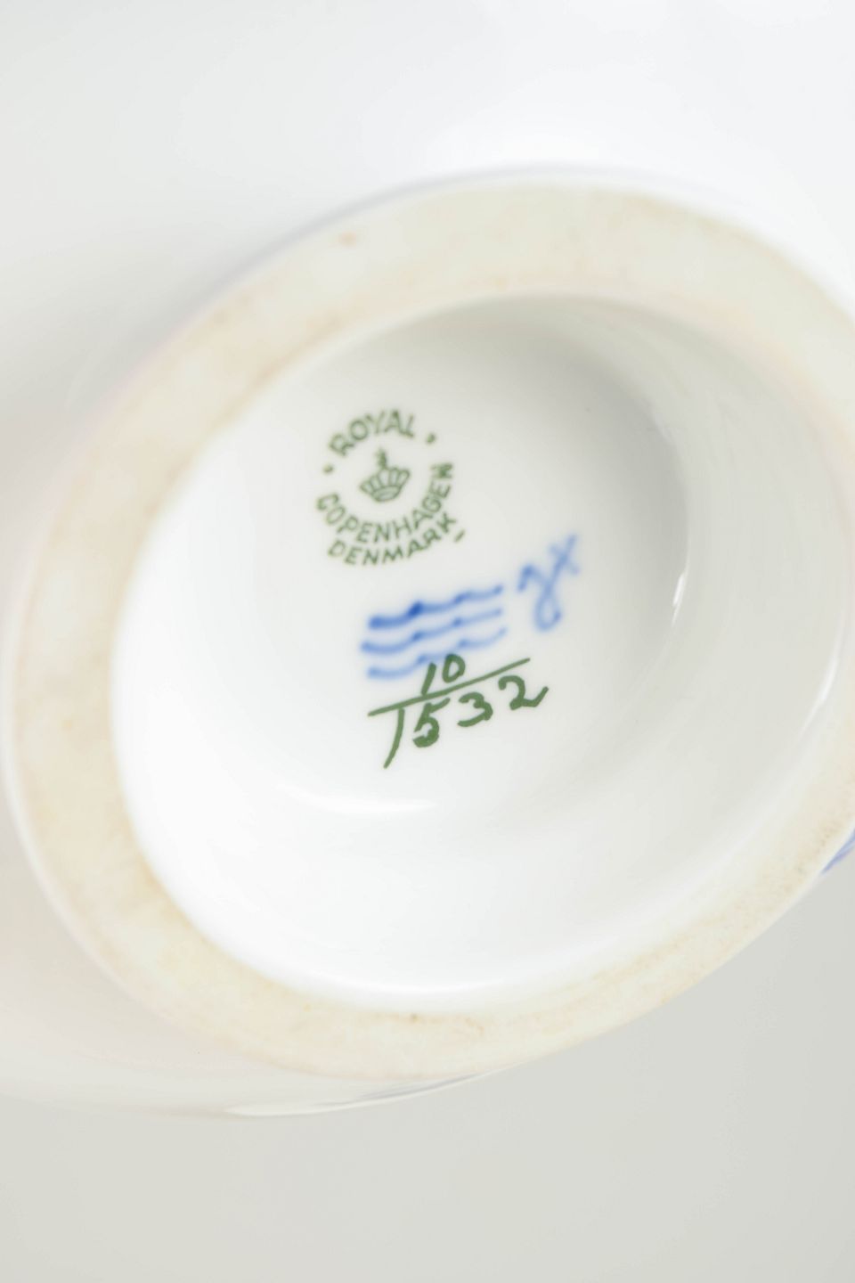 Royal Copenhagen blev grundlagt i 1775 i København under kongelig bevilling. Fabrikken er internationalt anerkendt for sit håndmalede porcelæn og høje kunstneriske kvalitet. Blå Blomst Svejfet blev introduceret i 1700-tallet og videreført gennem det 20. århundrede og er kendetegnet ved sin naturalistiske blomsterdekoration og elegante svejfede form.