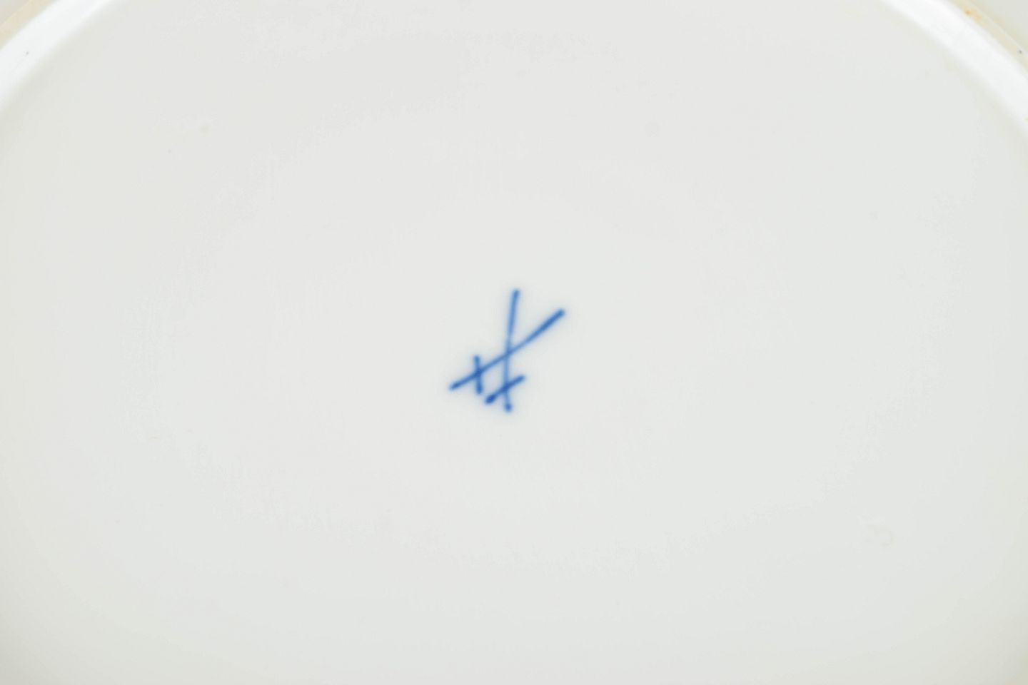 Sæt af to frokosttallerkener i håndmalet porcelæn med Blå Orkidé dekoration. Fremstillet hos Meissen og mærket med Meissen krydssværd. Annulleret med to indridsede streger under bunden.