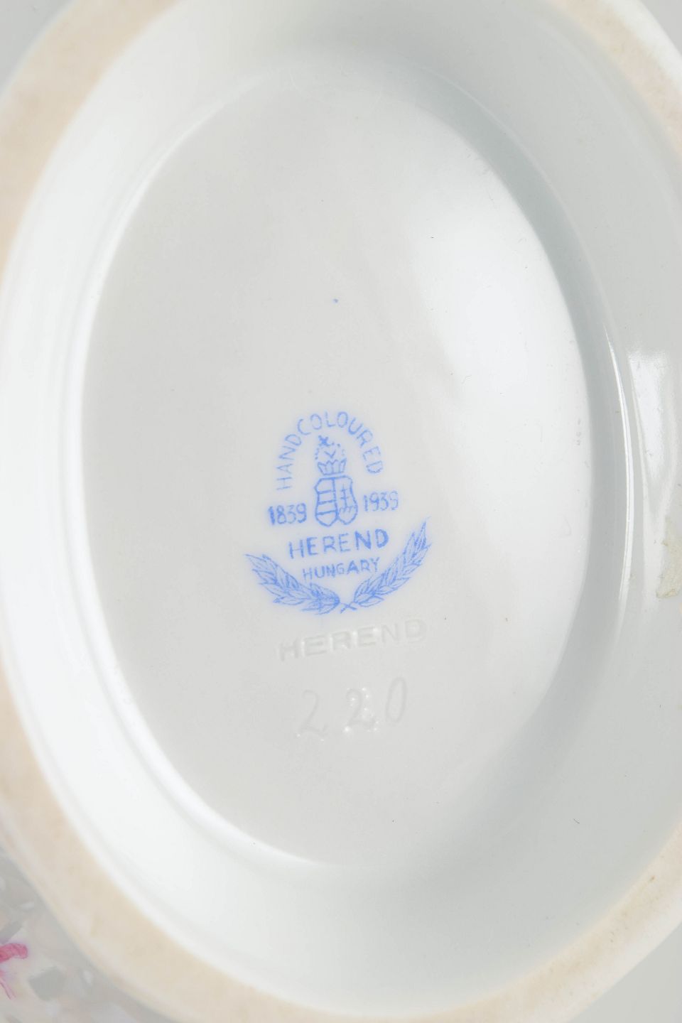 Herend Porcelánmanufaktúra blev grundlagt i 1826 i Herend, Ungarn. Fabrikken opnåede international anerkendelse ved Verdensudstillingen i London i 1851 og blev hurtigt leverandør til europæiske kongehuse og aristokrati. Apponyi-dekorationen blev udviklet i slutningen af 1800-tallet og er opkaldt efter den ungarske greveslægt Apponyi. Dekoren er kendetegnet ved stiliserede blomsterbuketter, som findes i flere farvevarianter, herunder den rosa udgave.