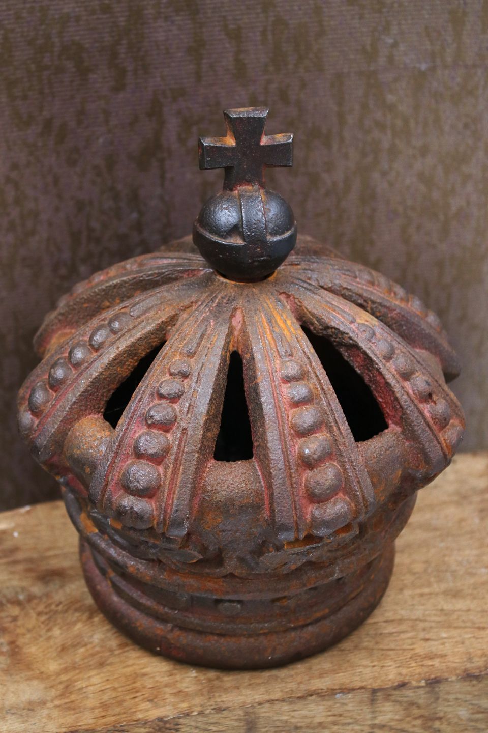 Dekorativ , gammel " Kongekrone " i støbejern med en rigtig fin patina.