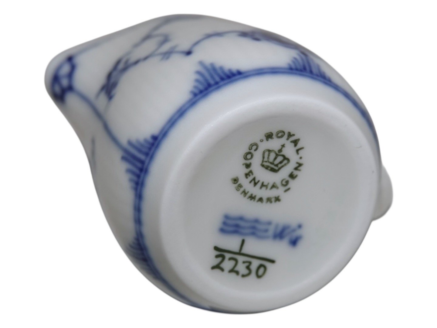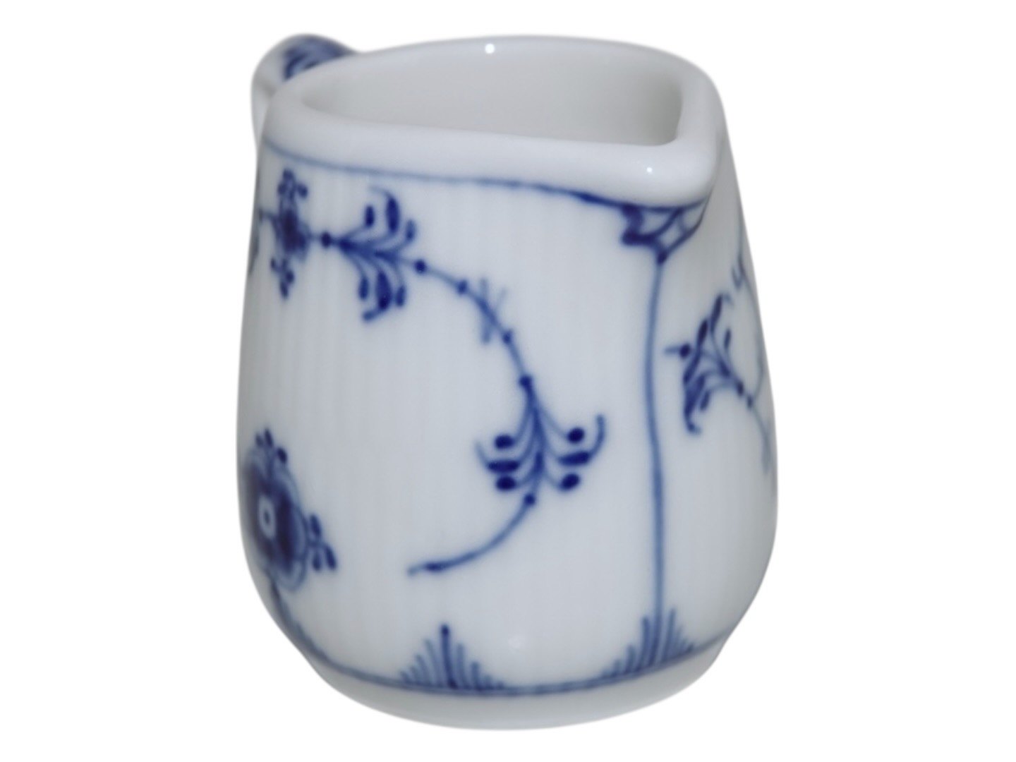 Royal Copenhagen Musselmalet Riflet i tykt jernporcelæn, miniature flødekande.