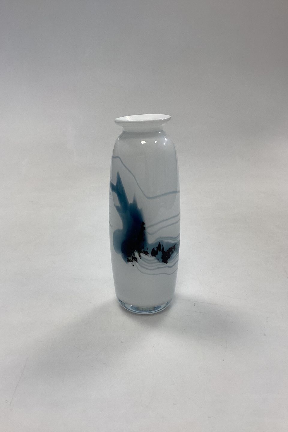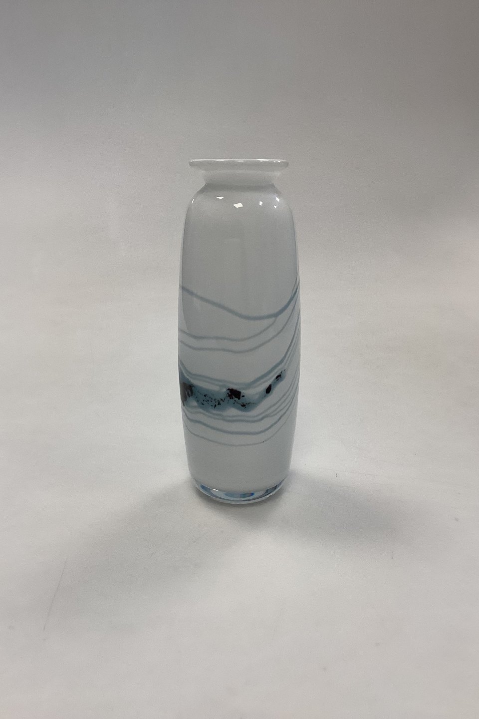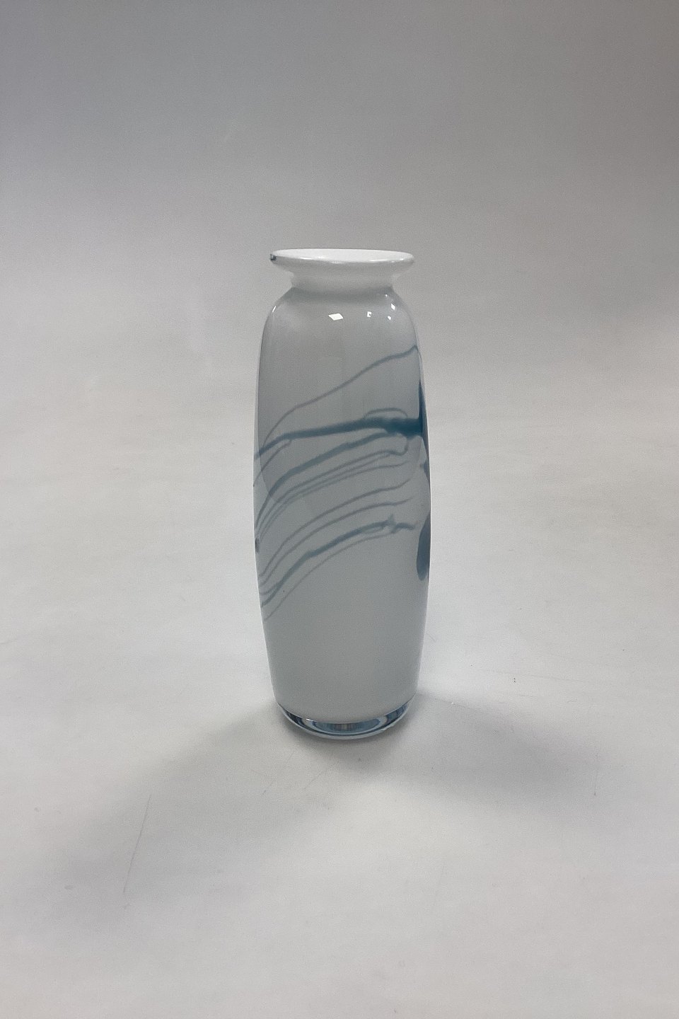 Holmegaard Atlantis Vase. Hvid med blå dekoration. Designet af Michael Bang.