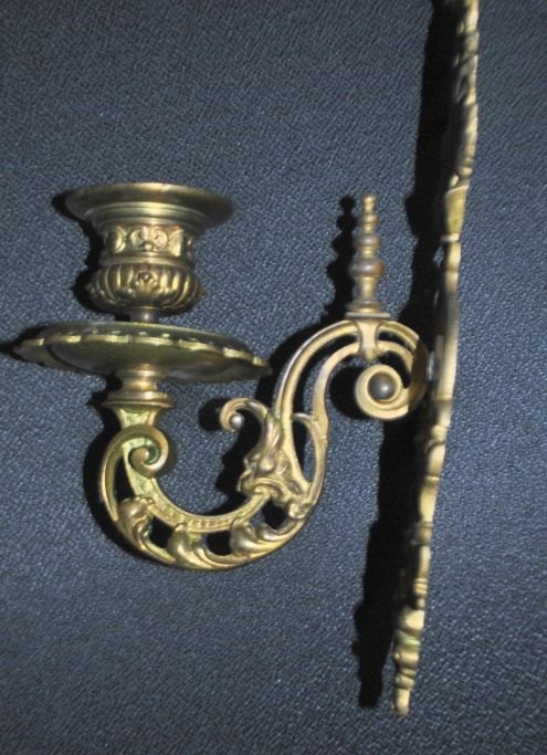 Paar französischer Wandleuchter aus Bronze, 19. Jahrhundert. Stempel: 14. Höhe: 34 cm.