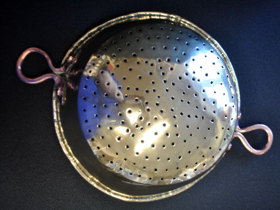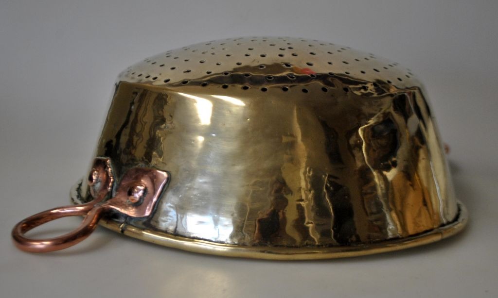 Messingsieb, 19. Jahrhundert. Dänemark. Mit Kupfergriffen. Durchmesser: 24,5 cm.