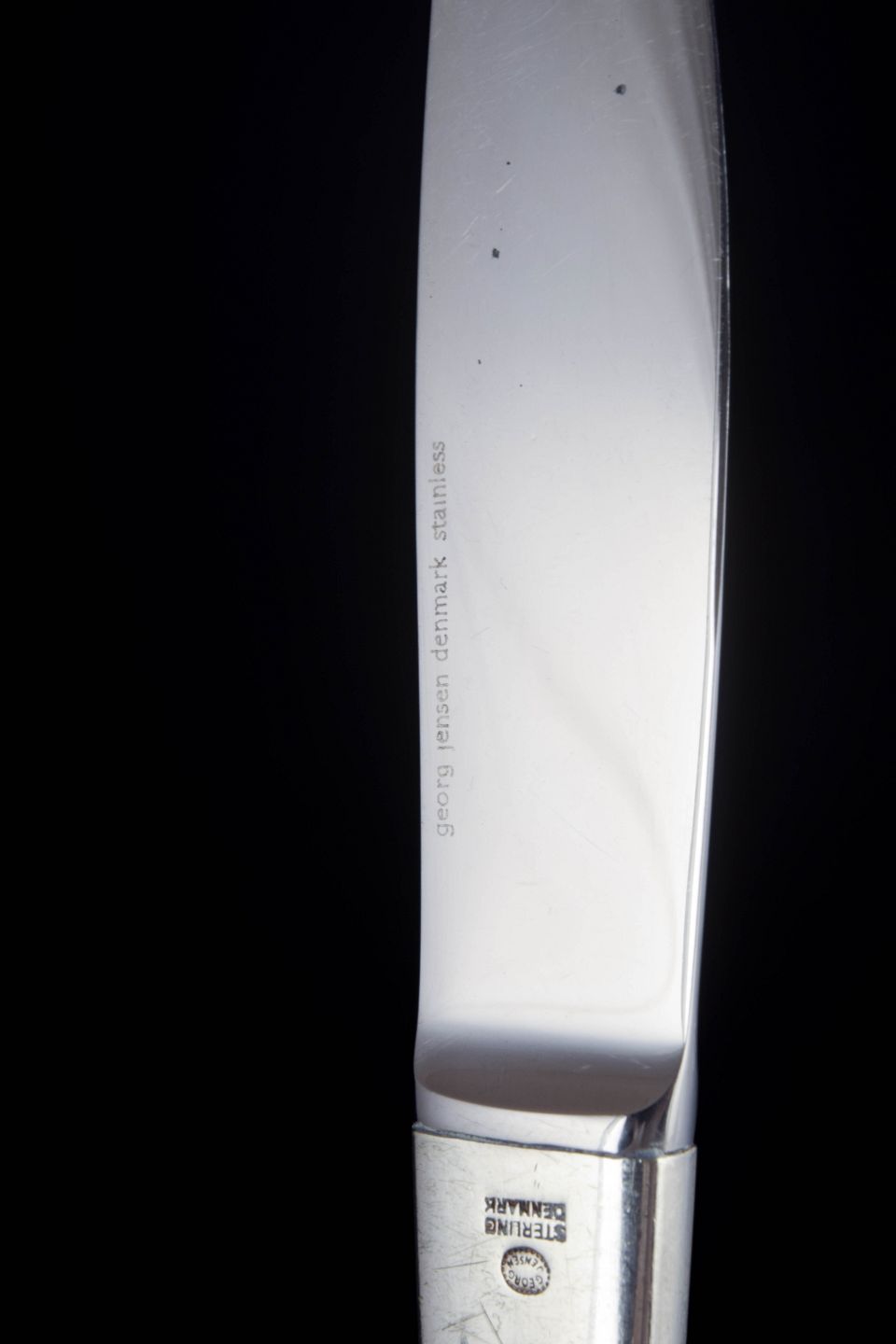 Text zugänglich auf Dänische: Henning Koppel for Georg Jensen, to frokostknive Caravel.