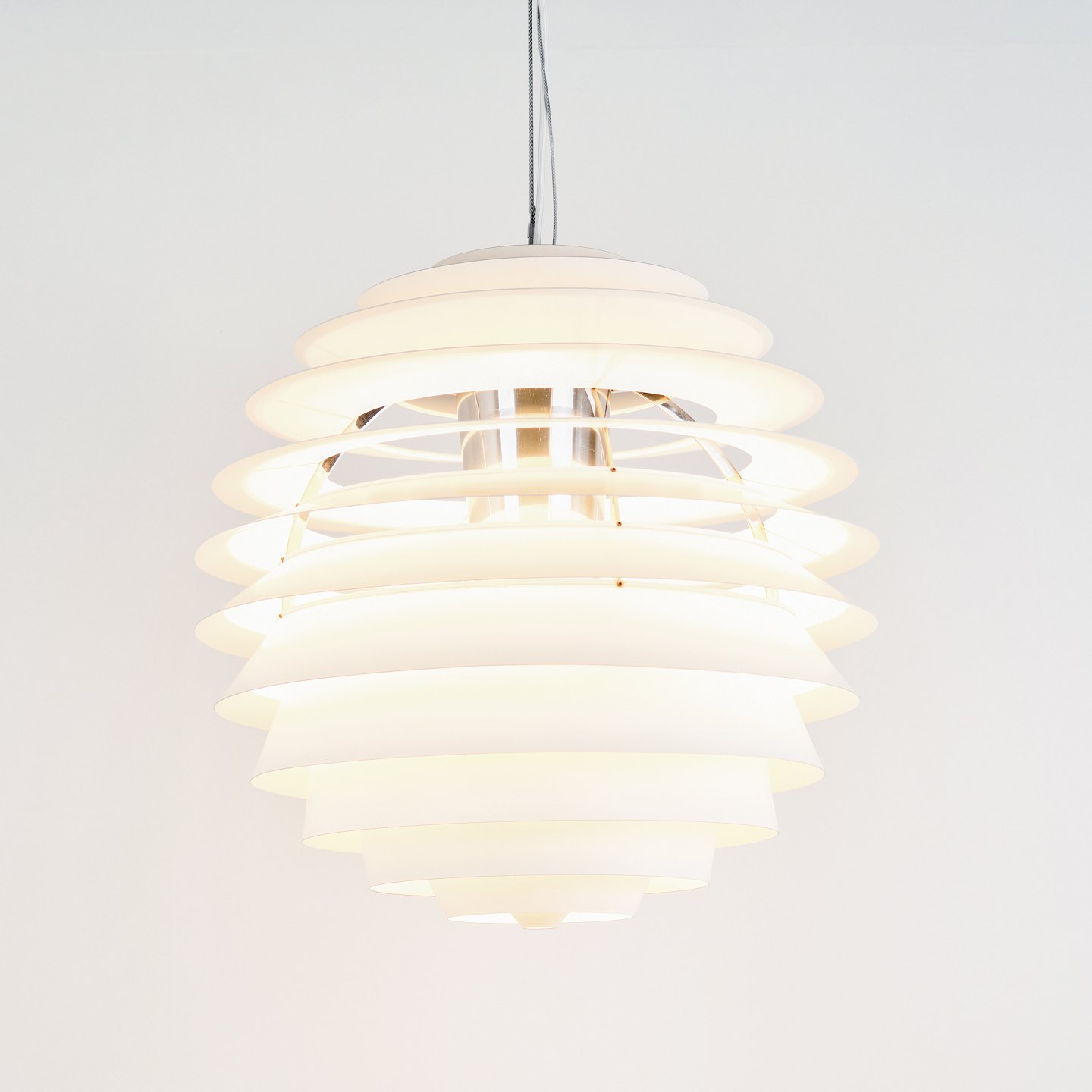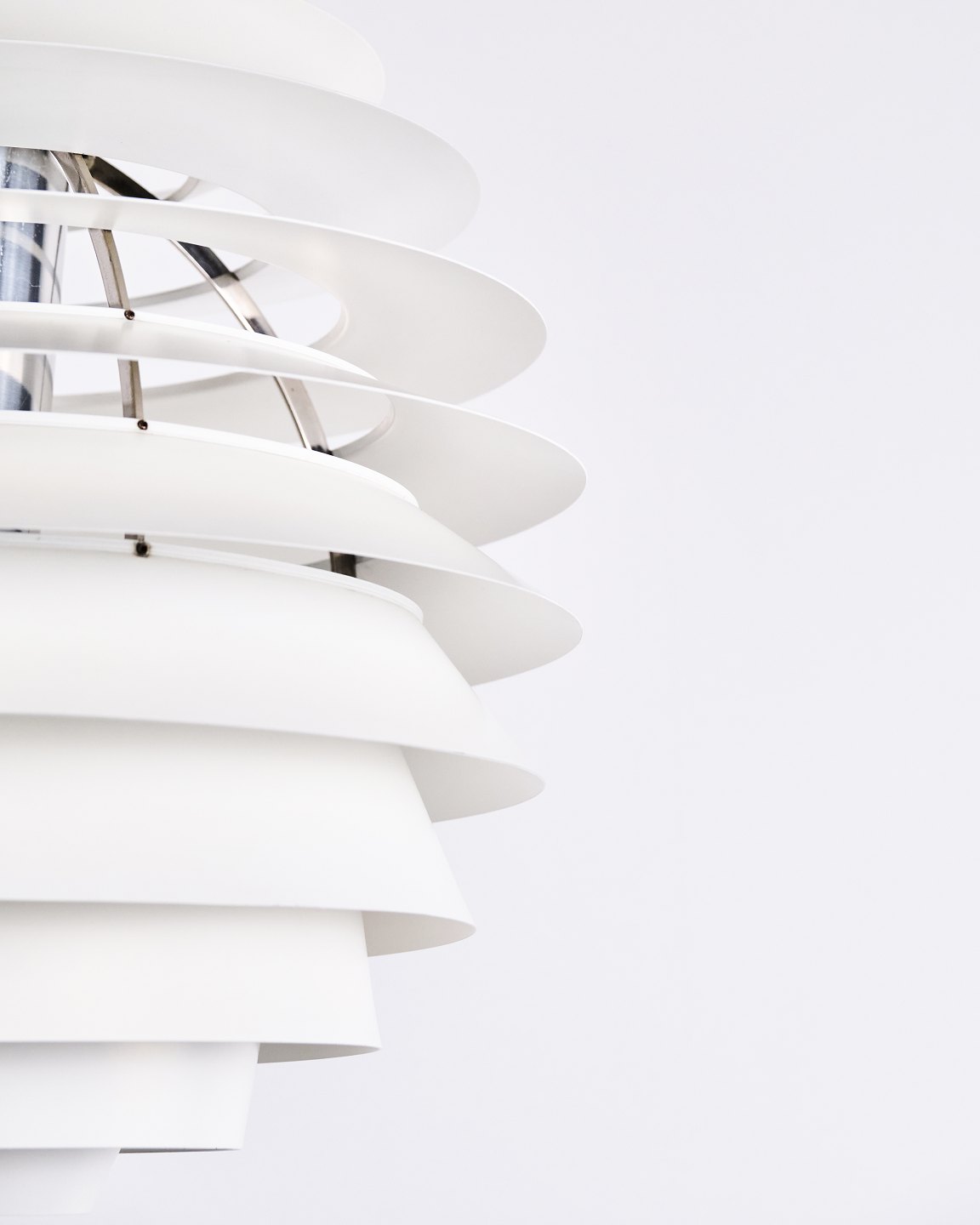 PH Louvre ist eine Weiterentwicklung von Henningsens früheren Arbeiten, darunter Spiralen aus dem Jahr 1942, und der Name bezieht sich auf die Lamellenstruktur, bei der das Licht elegant durch die Schirme gefiltert wird.