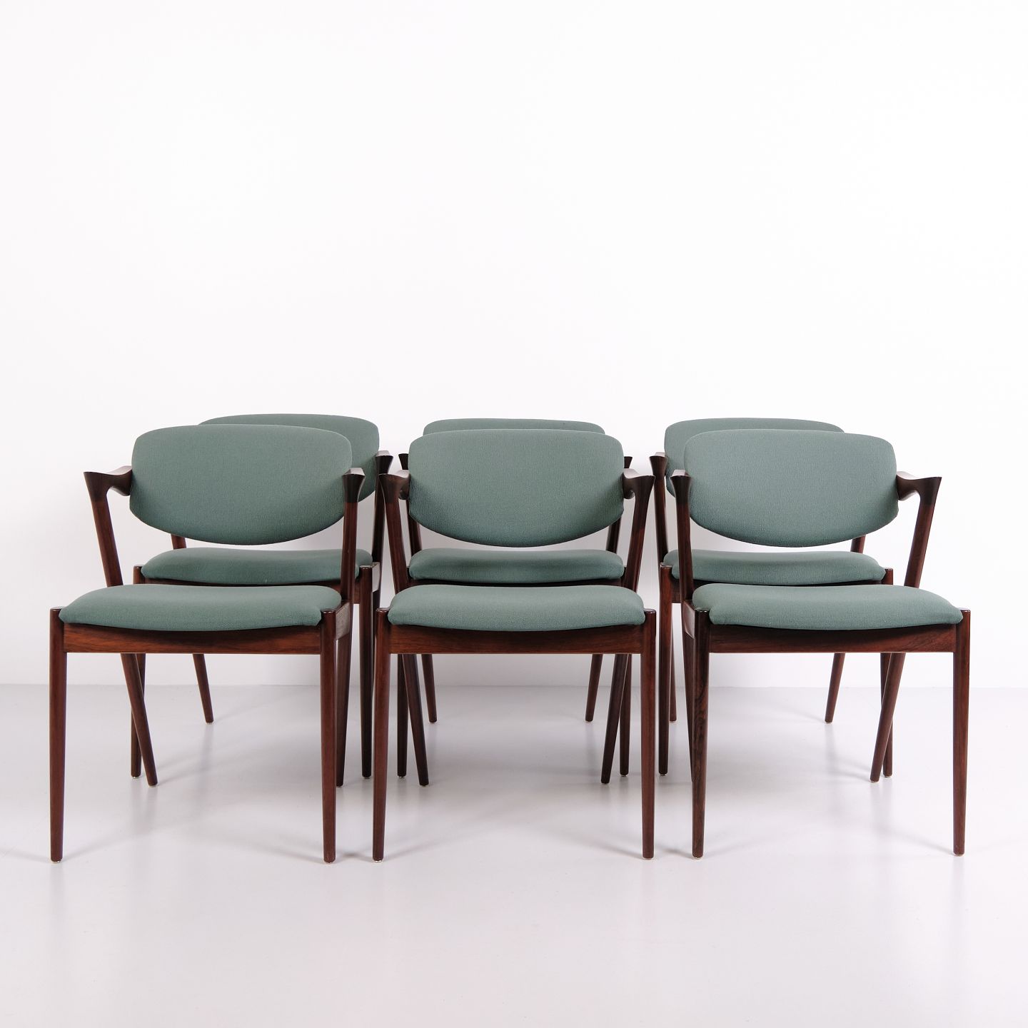 Kai Kristiansen Modell 42 Esszimmerstühle aus Palisander mit Türkisblauem Bezug, Satz von 6, 1960er