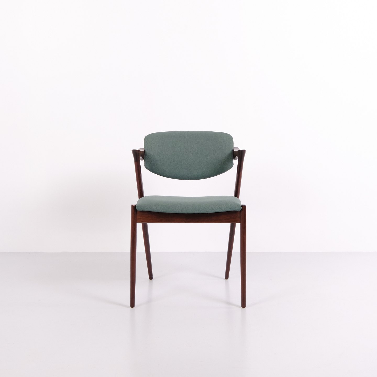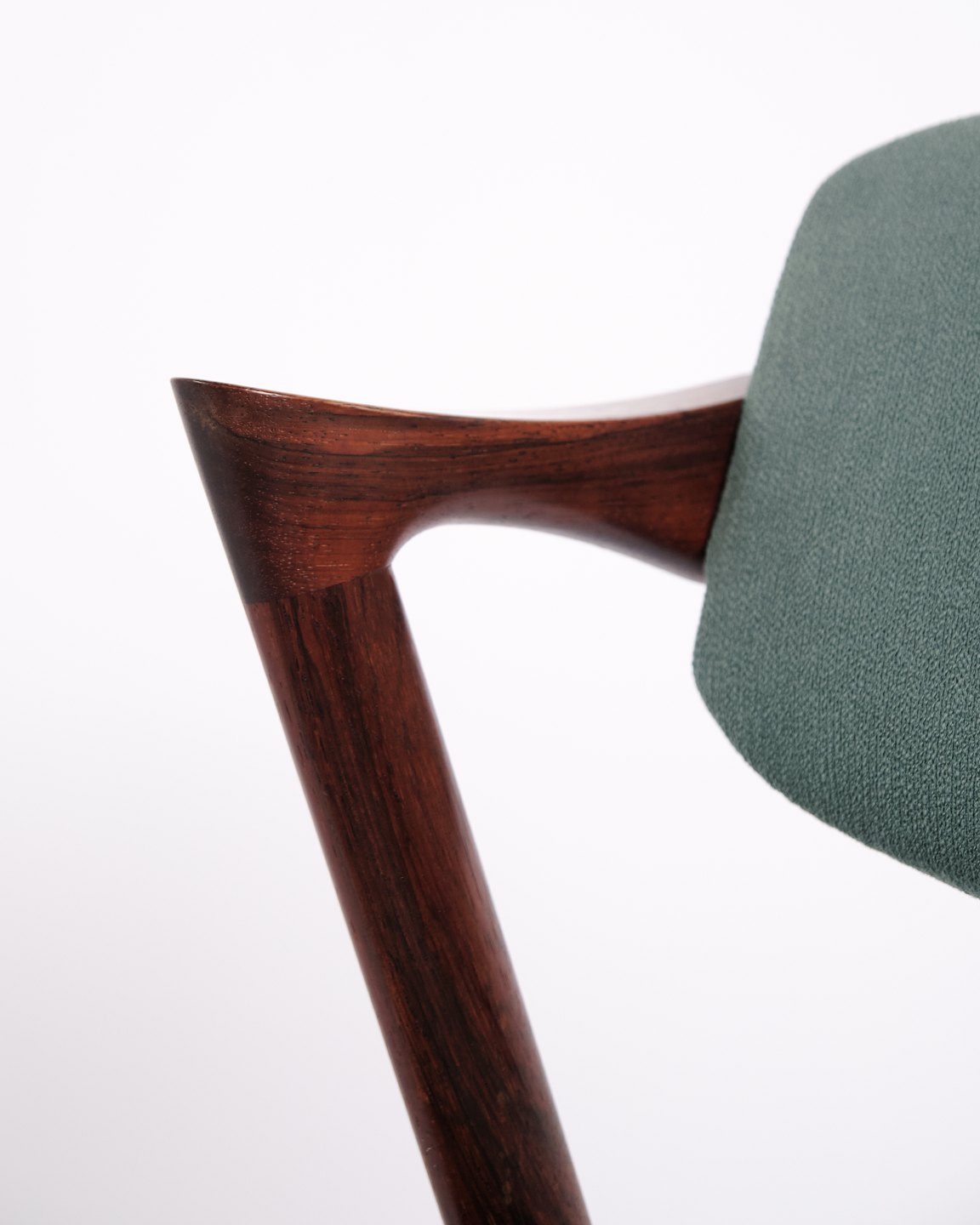 Satz Esszimmerstühle, Modell 42, entworfen von Kai Kristiansen in den 1960er Jahren. Die Stühle sind aus Palisander gefertigt und zeichnen sich durch ihre eleganten Proportionen, die skulpturale Rückenlehne und präzise dänische Schreinerarbeit aus. Modell 42 gilt als ein markantes Beispiel für dänisches Möbeldesign aus der Mitte des 20. Jahrhunderts.