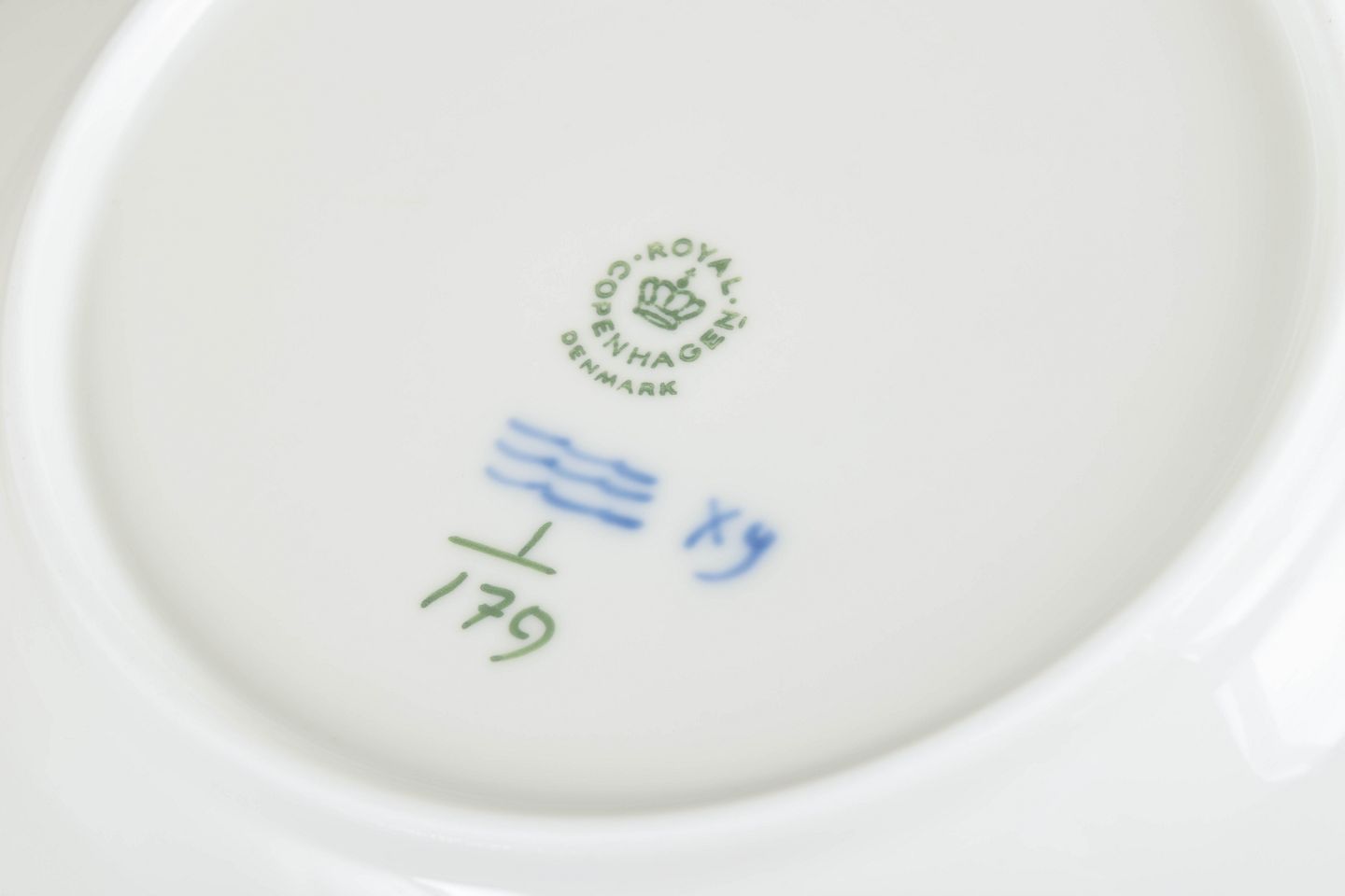 Text zugänglich auf Dänische: Royal Copenhagen Musselmalet Riflet, sæt af tre tallerkener.