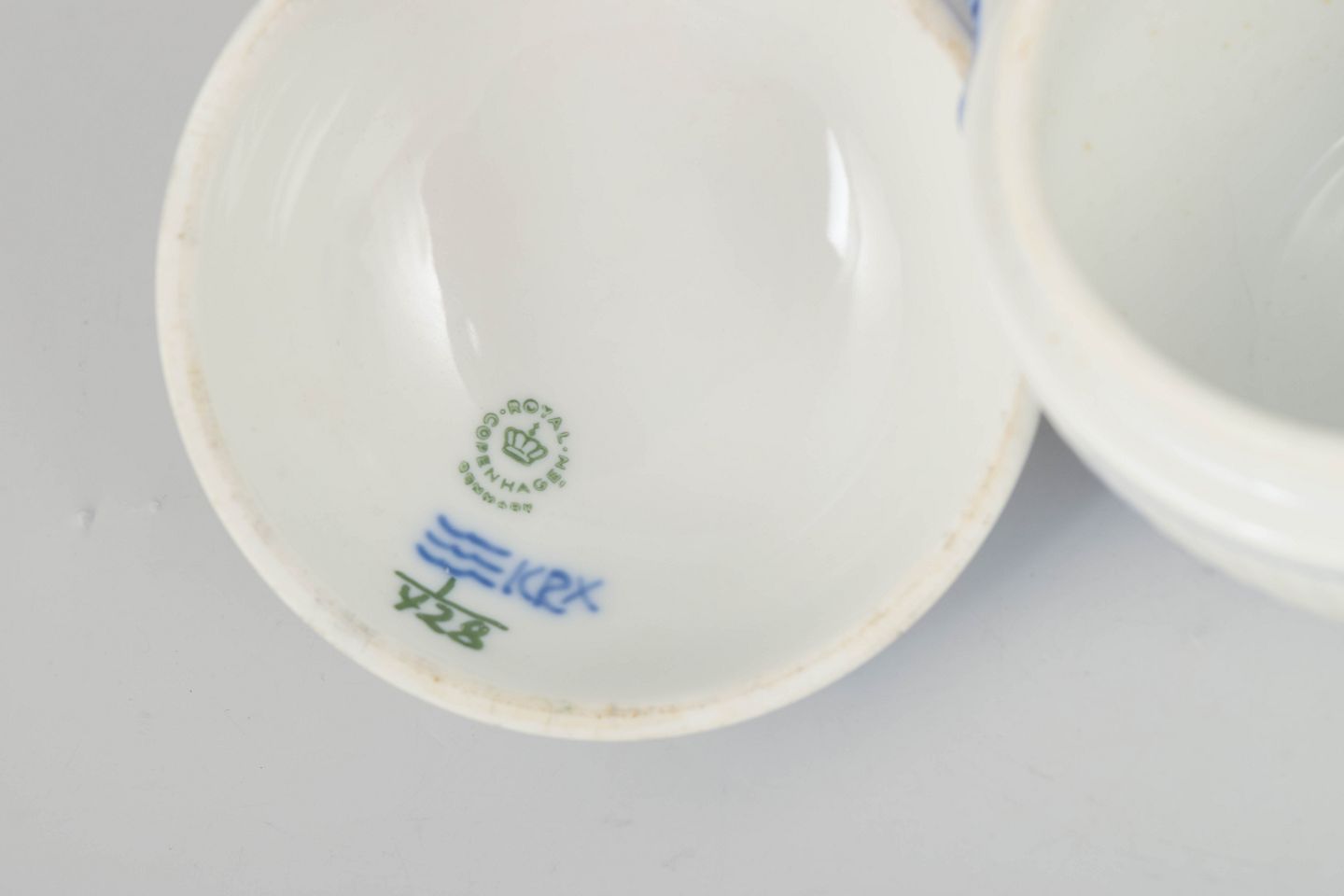 Text zugänglich auf Dänische: Royal Copenhagen Musselmalet Riflet, sukkerskål og flødekande.
