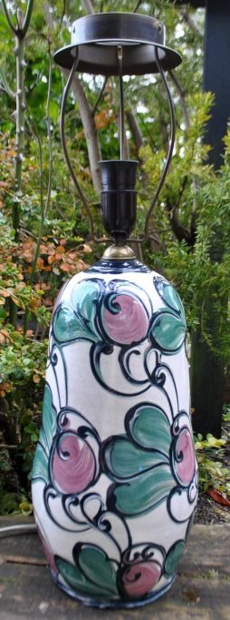 Tischlampe von Hornbæk Keramik, 20. Jahrhundert, Dänemark. Glasur in Weiß, Schwarz, Grün und Rosa. Gestempelt: HK. Höhe: 58 cm. Durchmesser: 16 cm.