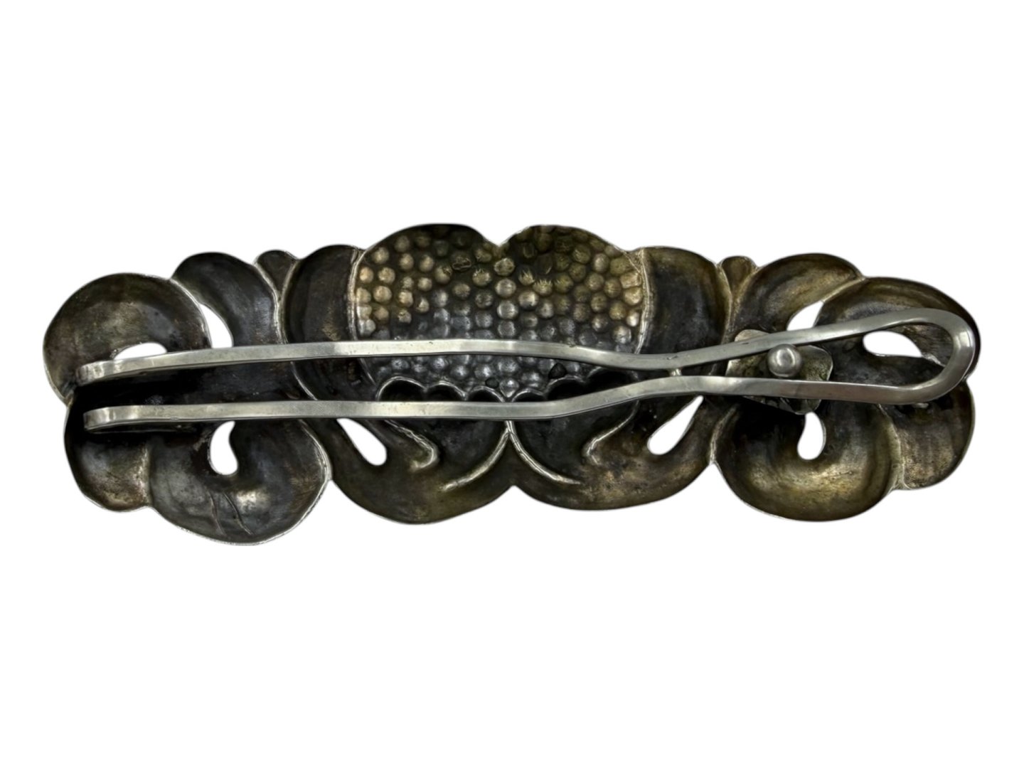 Art Nouveau stort sølv hårspænde med rav fra ca. 1920.