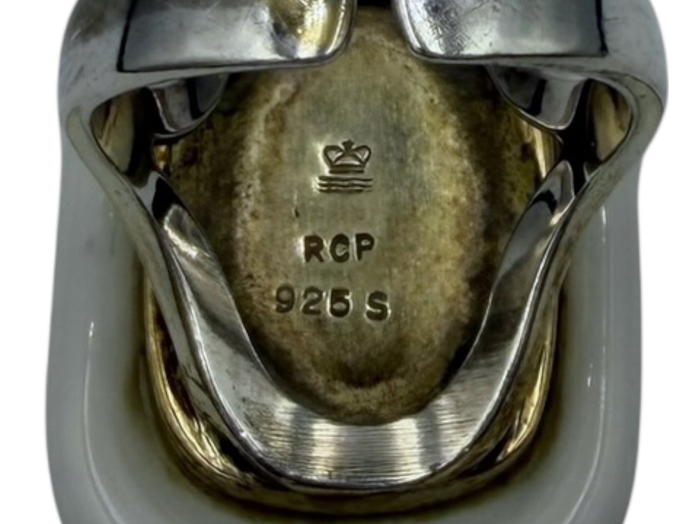 Royal Copenhagen sterlingsølv - stor ring i sølv med moderne porcelæn.