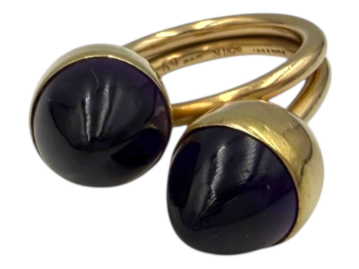Bent Knudsen, stor 14 karat guldring med to runde lilla ametyster fra 1970'erne. Lækker kraftig kvalitet.