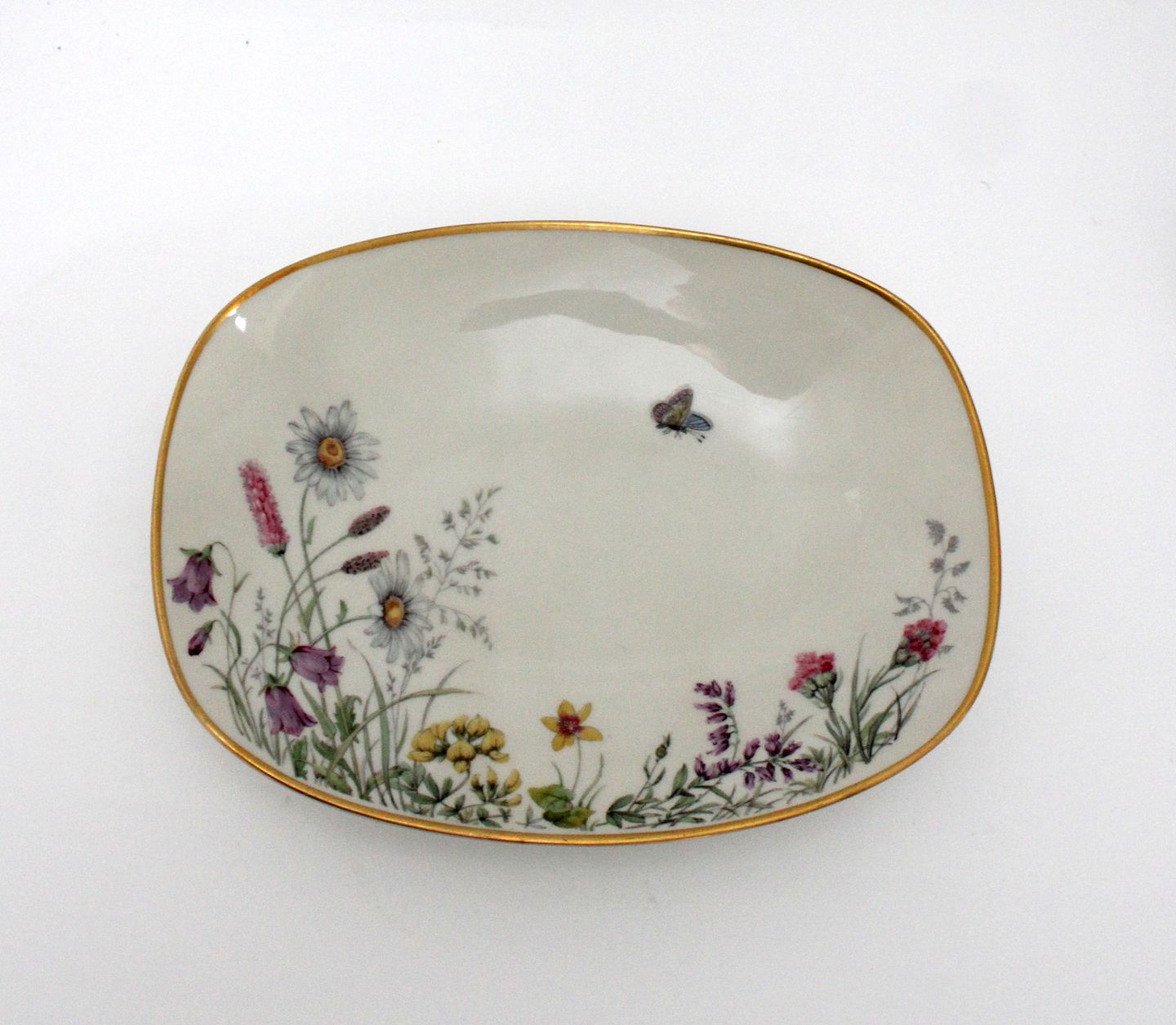 Rektangulært fad på fod, 2 forskellige motiver. Længde 22 cm. Bredde 17,5 cm. Højde 4 cm. Pris: 175 kr. stk. Lager: 1