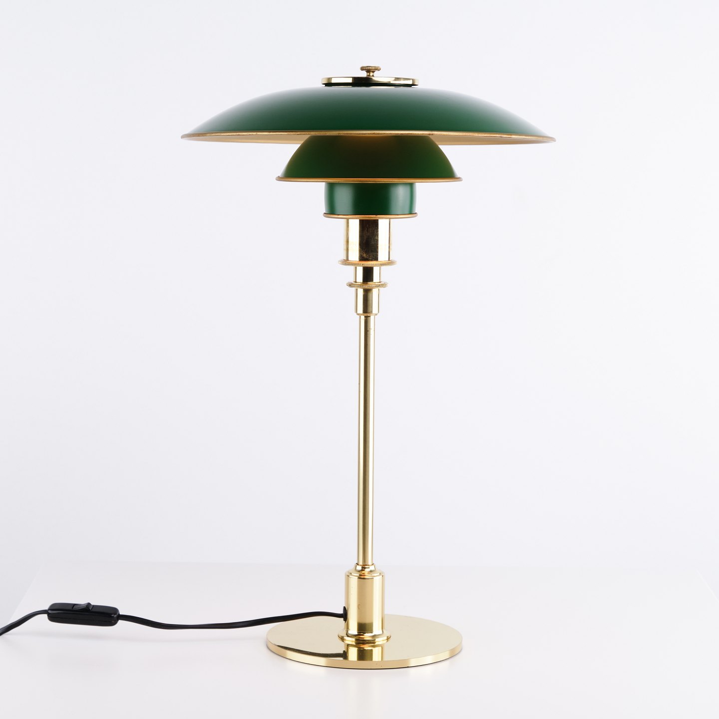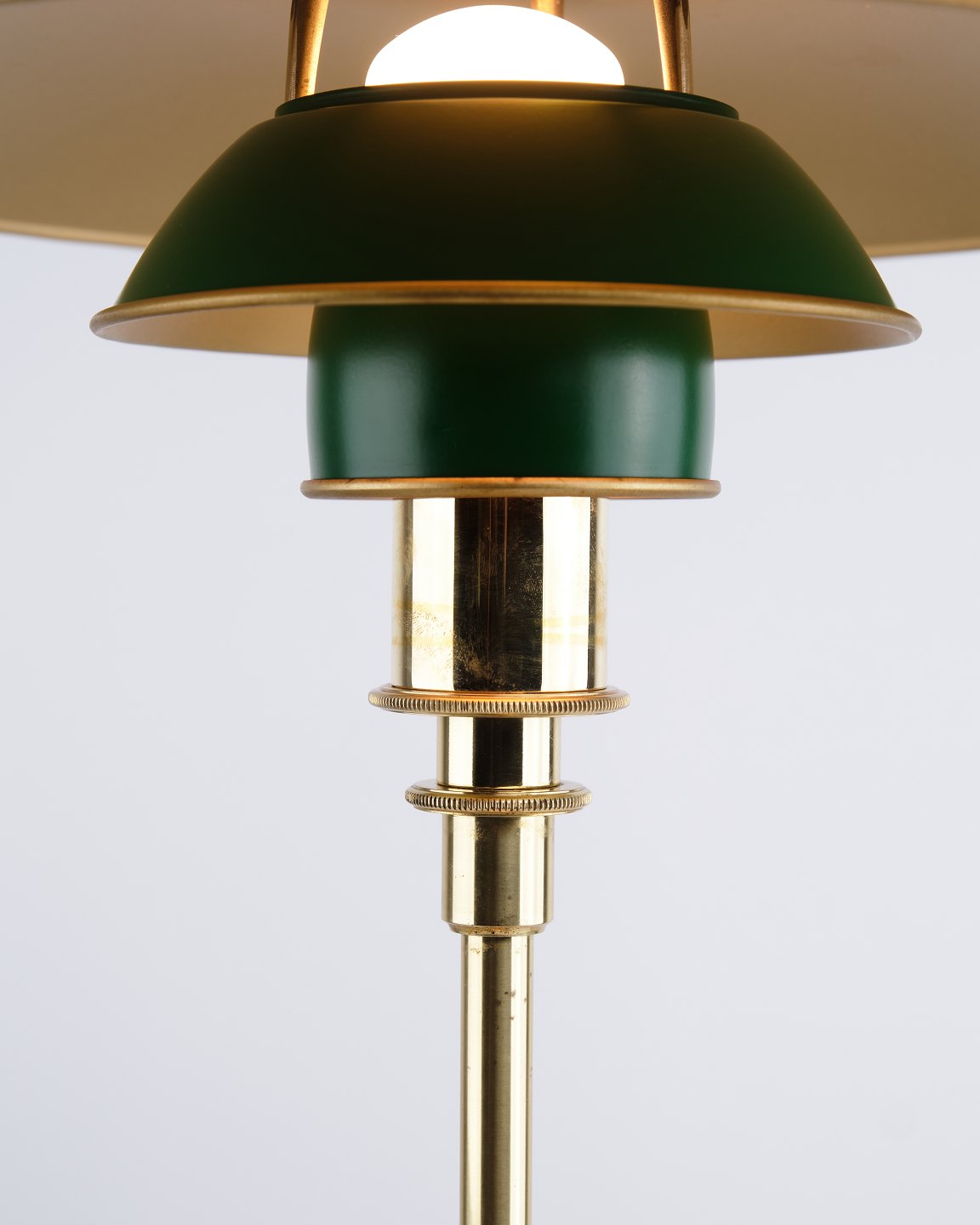 Poul Henningsen Tischlampe Modell PH 3/2 Jubiläumsausgabe aus Messing mit grünen Metallschirmen für Louis Poulsen