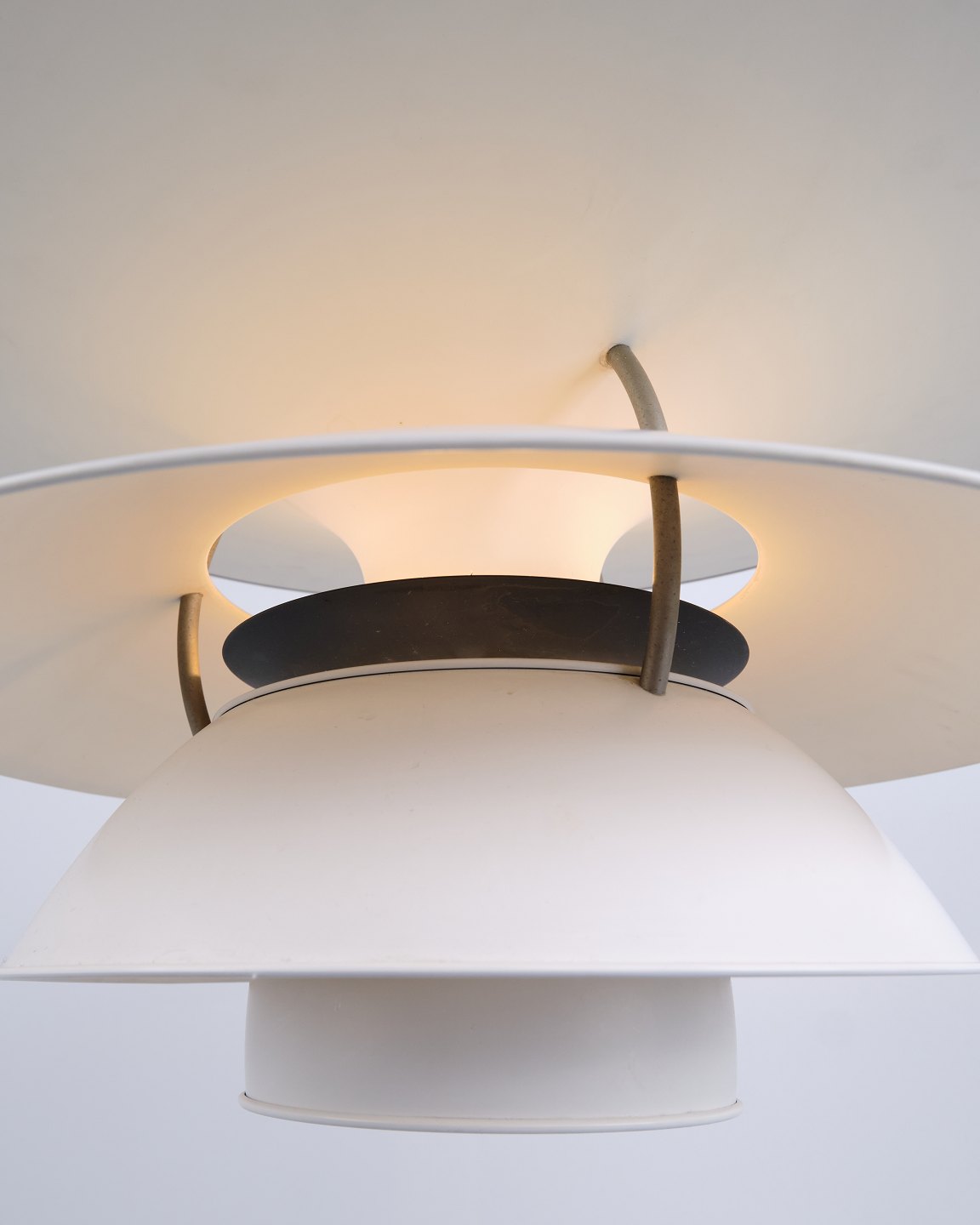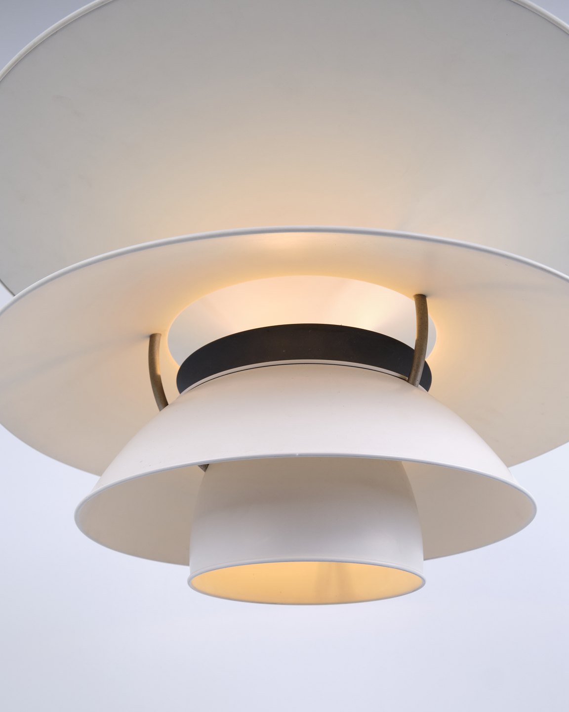 Zur Reduzierung der Blendung wurde ein innerer blauer Schirm hinzugefügt, der den Lichtkomfort verbessert und eine angenehmere Beleuchtung schafft. Die Konstruktion baut auf Henningsens Prinzipien der optimalen Lichtverteilung und des funktionalen Designs auf.
