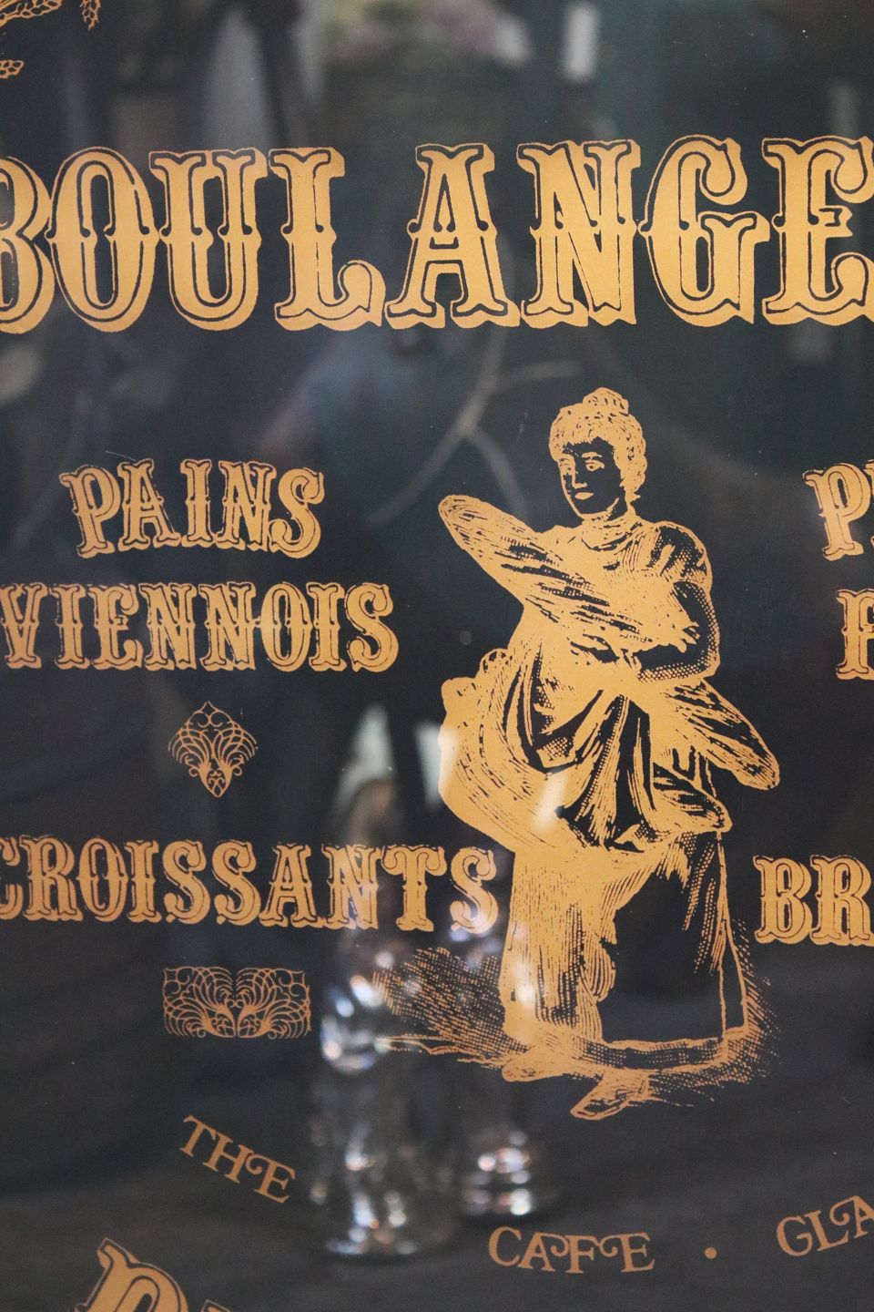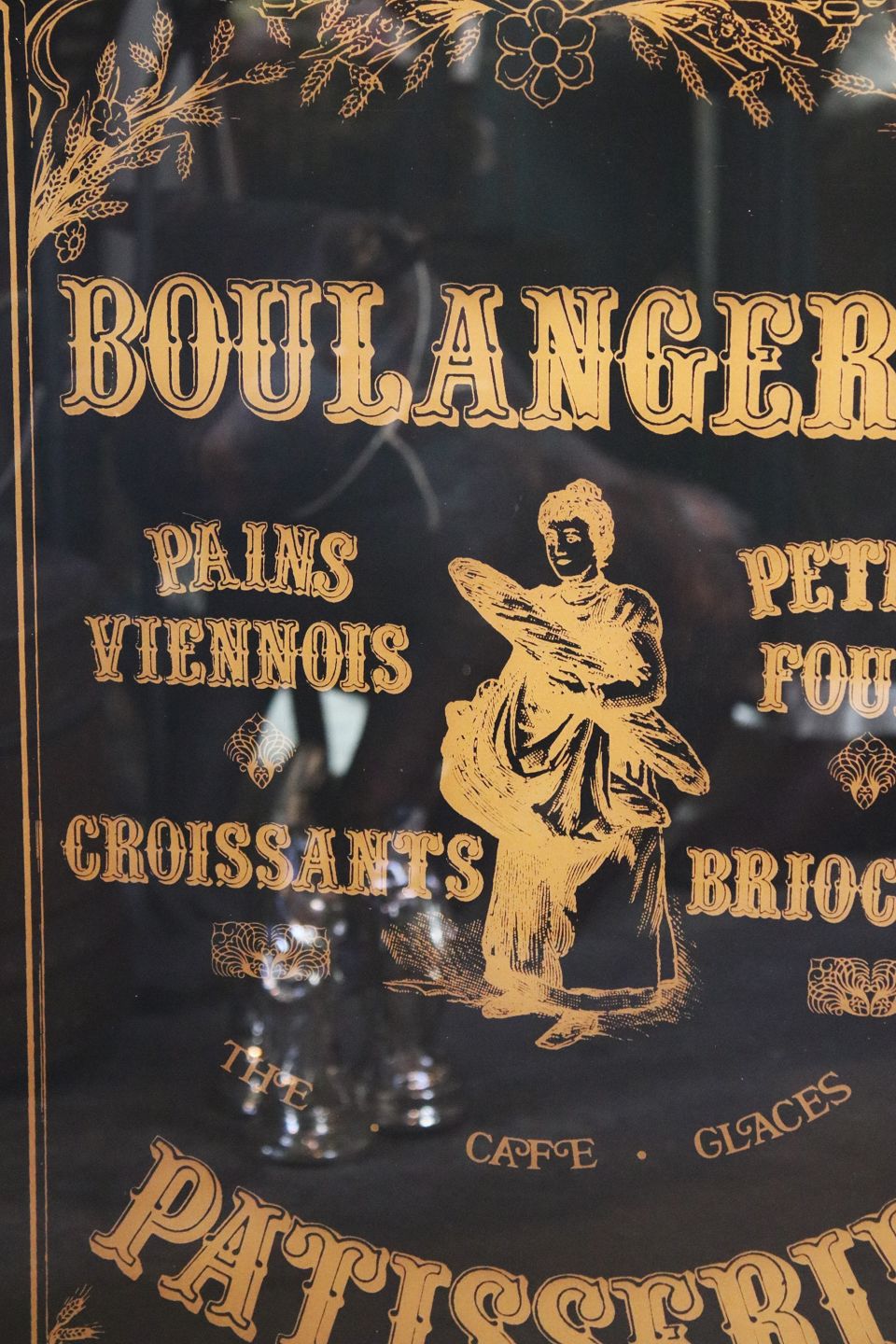 Reklame skilt fra en gammel fransk konditor / bageri , malet på glas "Boulagerie"...