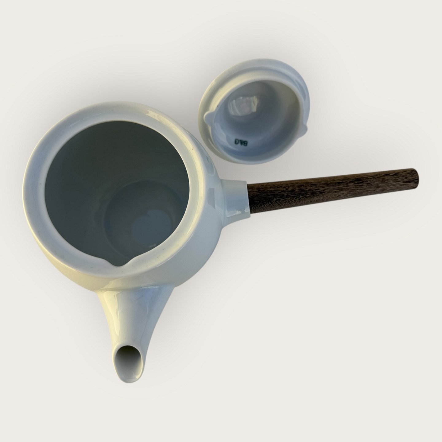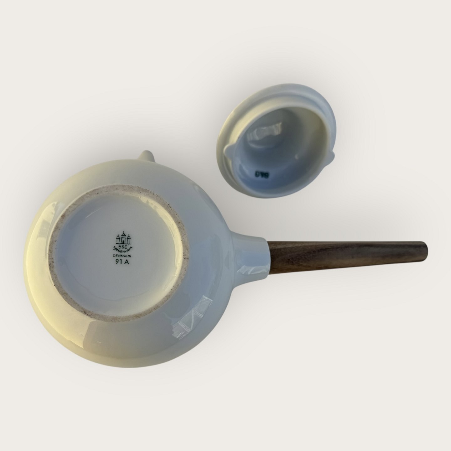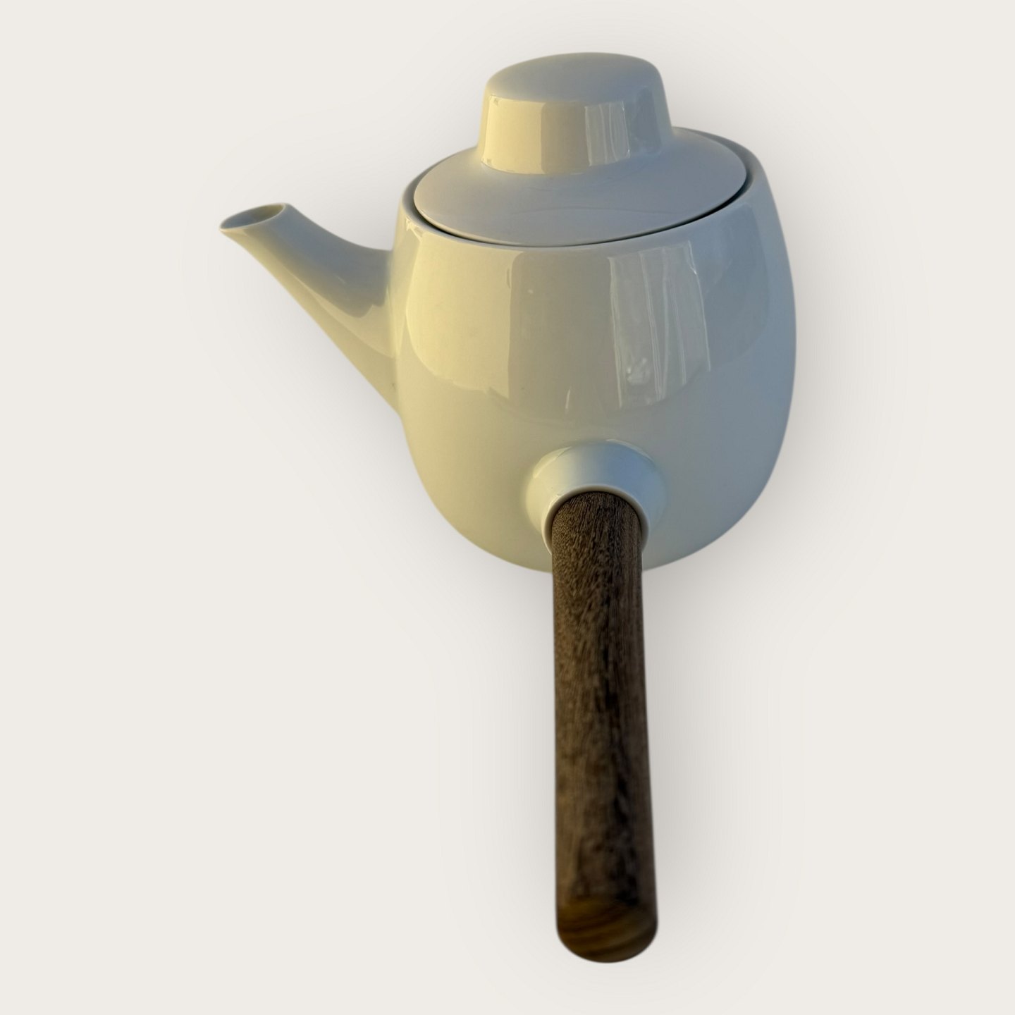 Bing & Grondahl, White Koppel, Teekanne mit Teakholzgriff aus den 1960er Jahren, Maße ca. 18 x 28 cm, Design Henning Koppel *sehr guter Zustand*