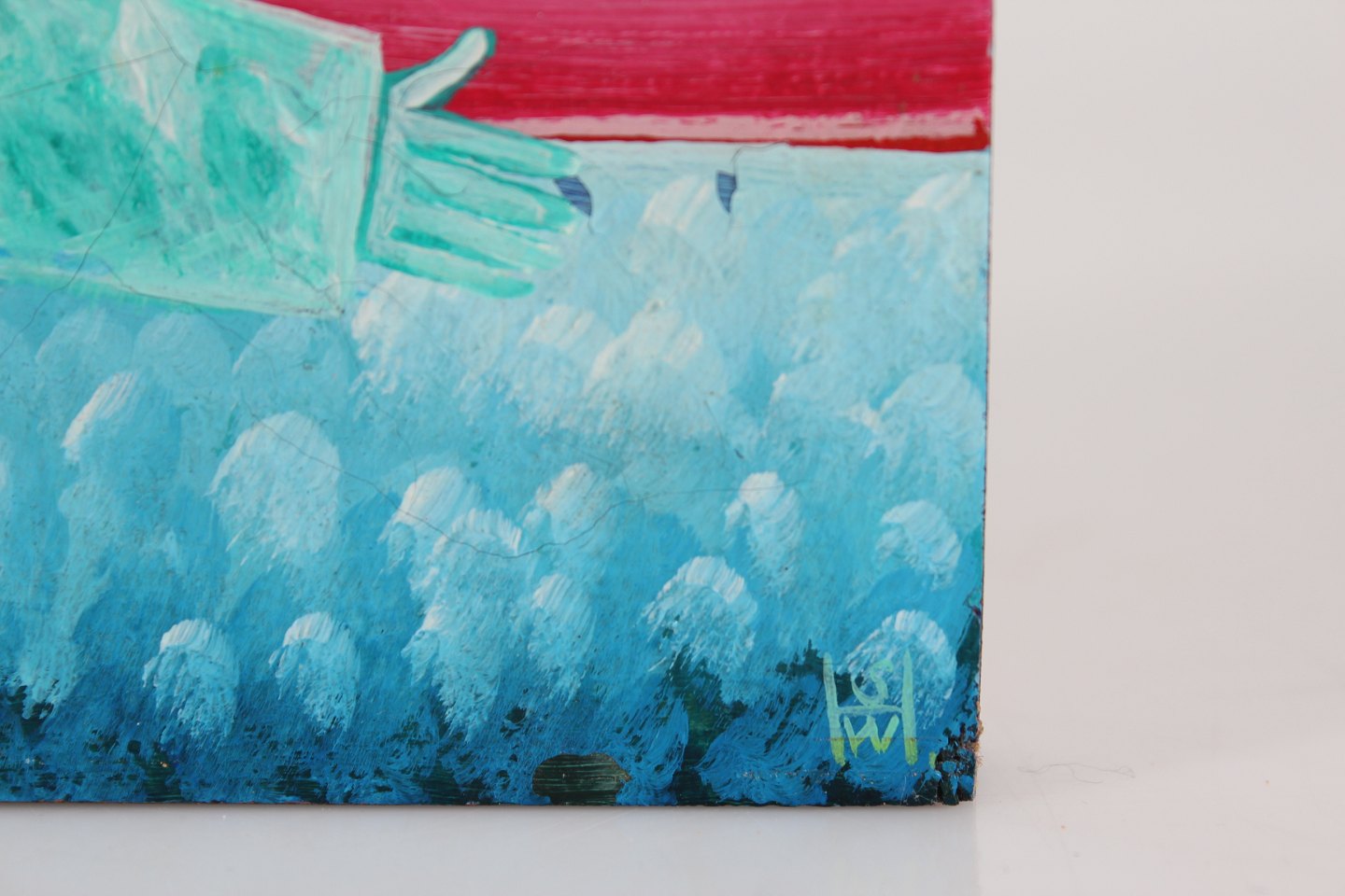 Lille maleri "Morgen ved havet" malet på træplade