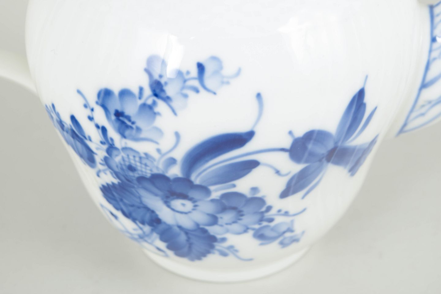 Tekande i porcelæn med låg og hank, dekoreret med håndmalet blå blomsterdekoration i relief.