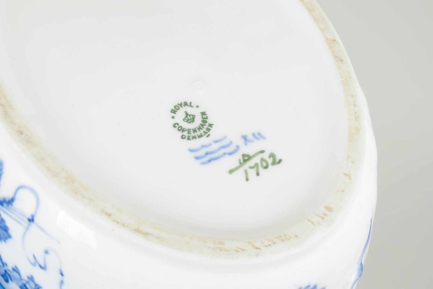 Text zugänglich auf Dänische: Royal Copenhagen, Blå Blomst Svejset oval terrin med låg.