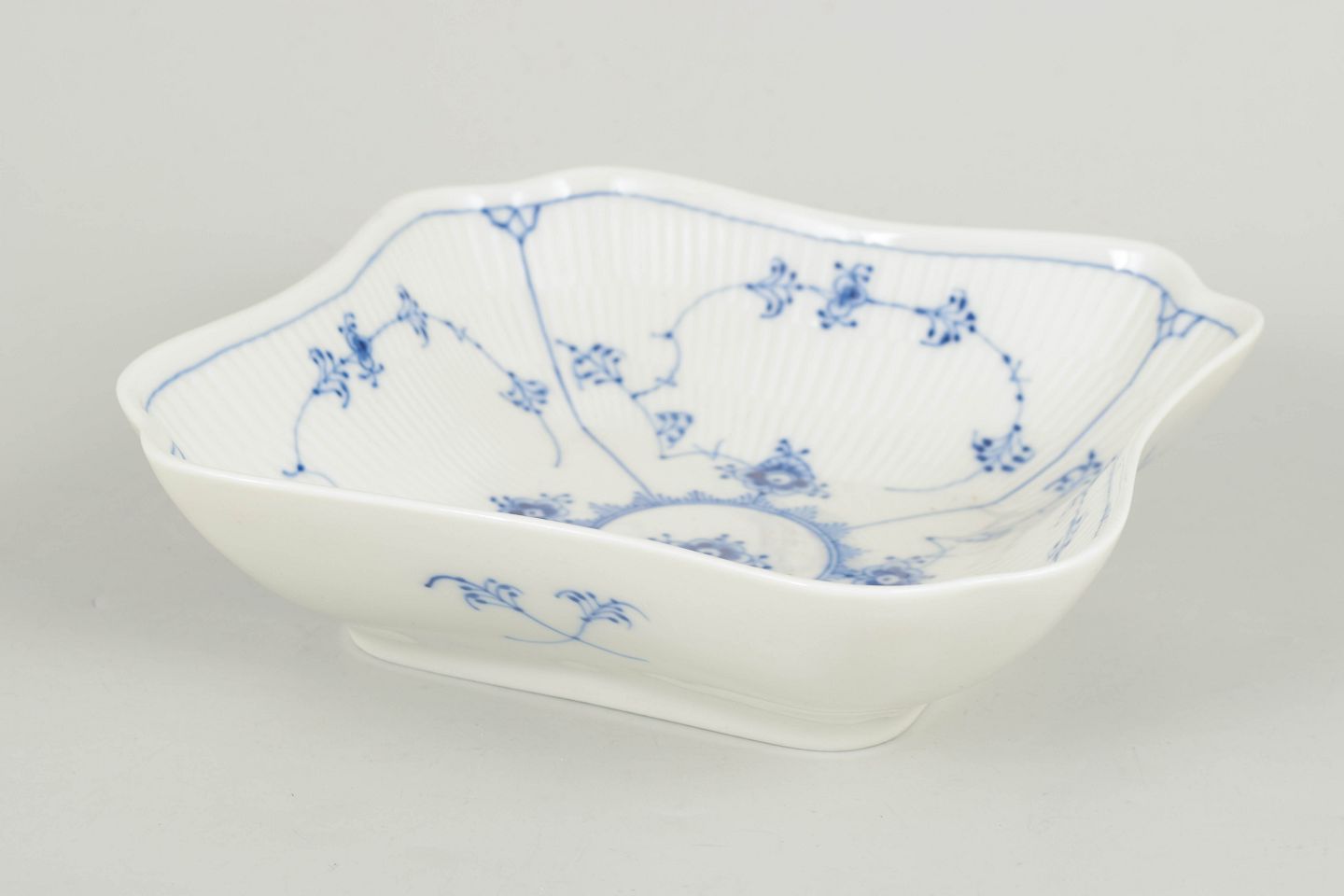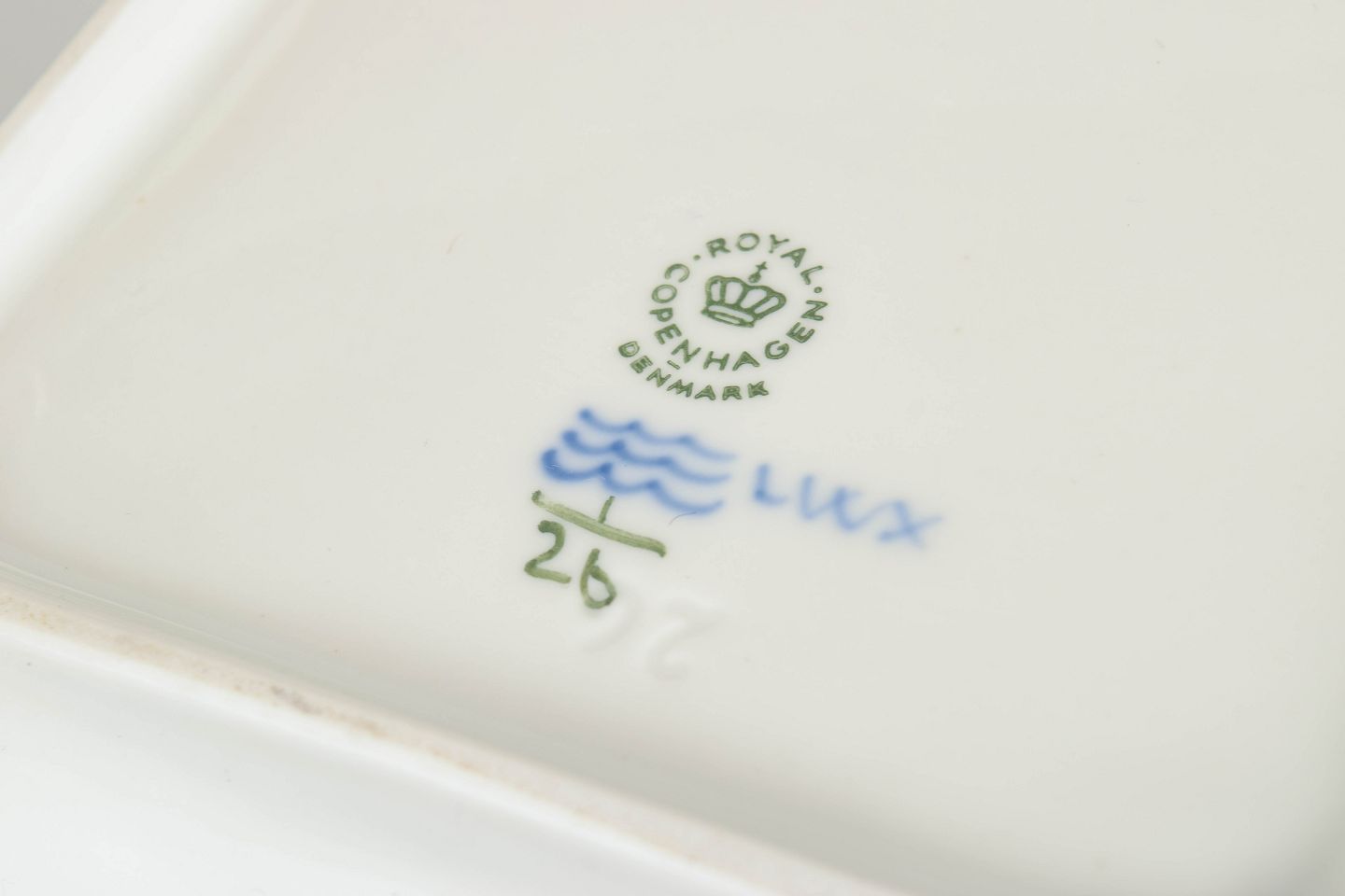 Text zugänglich auf Dänische: Royal Copenhagen, musselmalet riflet firkantet fad.