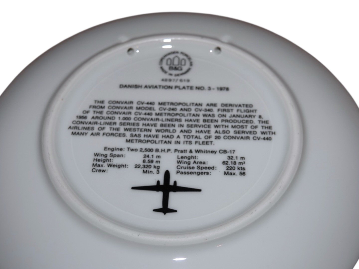 Bing & Grøndahl flyplatte Nummer 3, Metropolitan SAS.