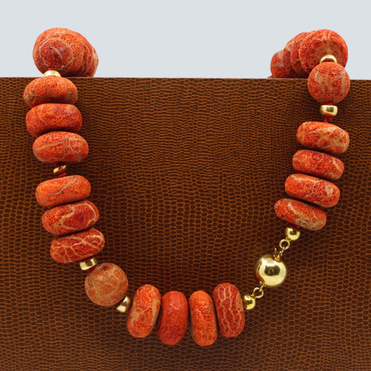 Halskæde af koral, med 14 kt. guld.