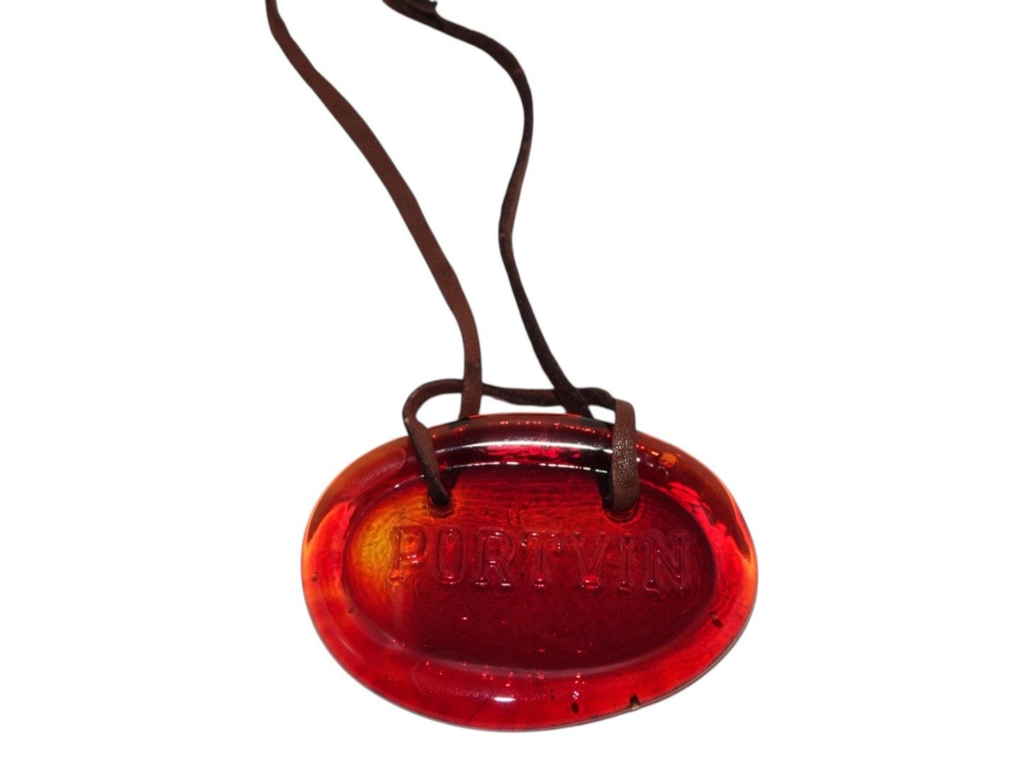 Stort "PORTVIN" skilt i orangerødt glas