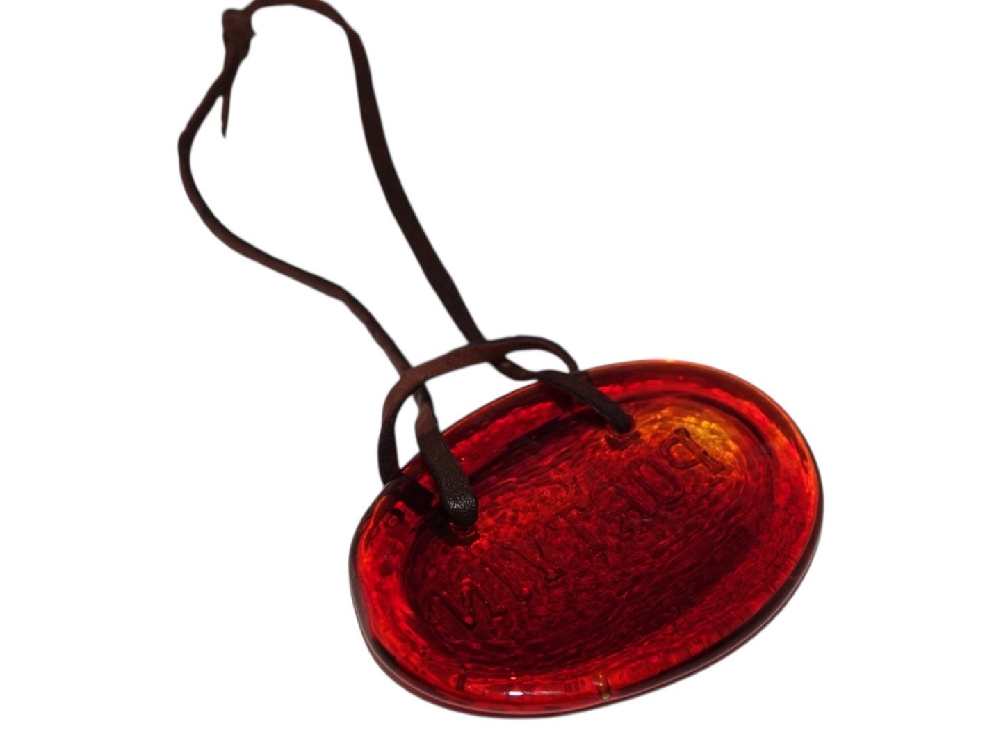 Holmegaard stort PORTVIN skilt i orangerødt glas fra 1970'erne.