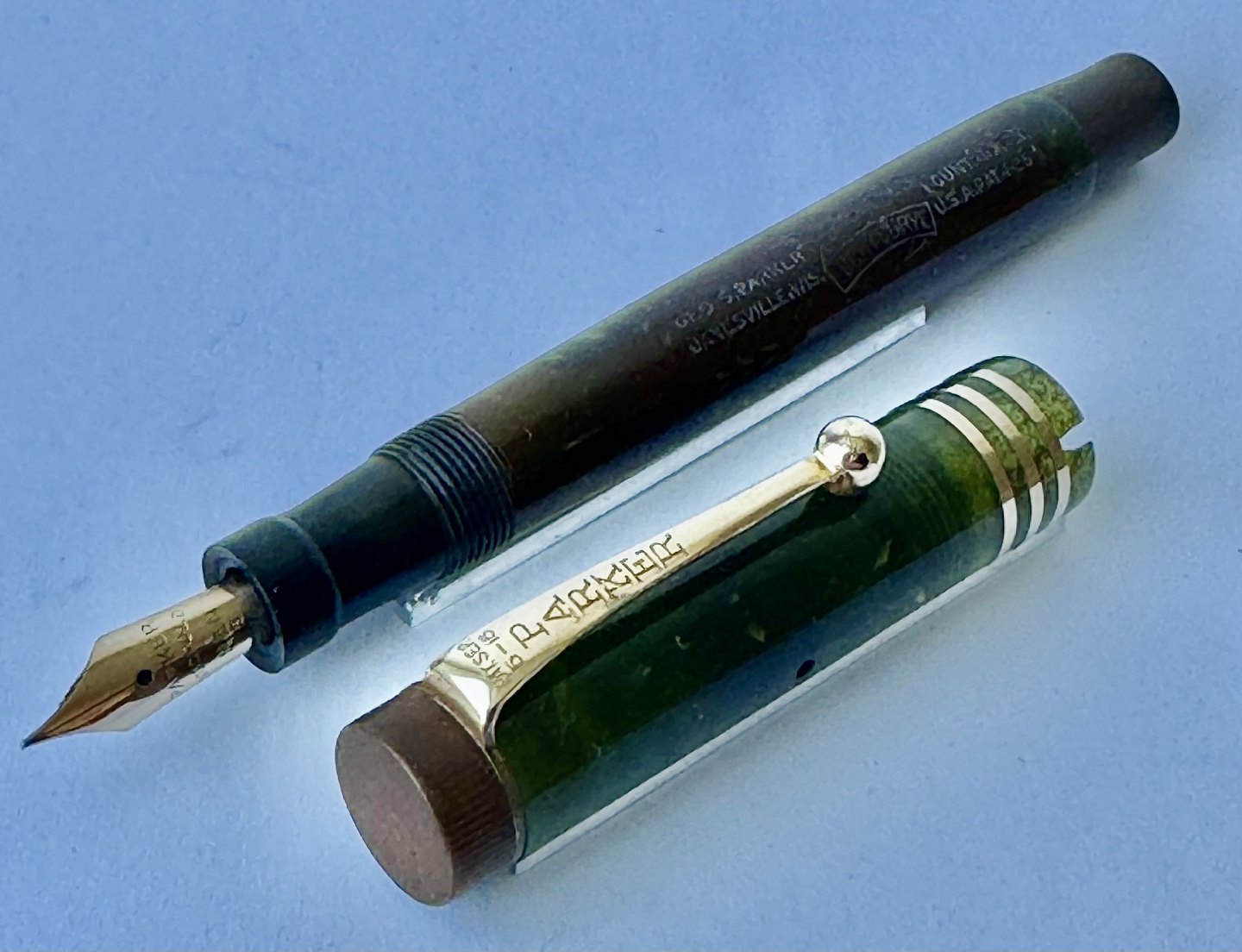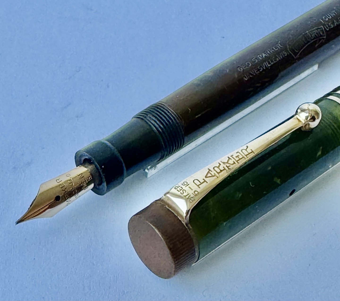 Grøn marmoreret Lady Parker Duofold fyldepen