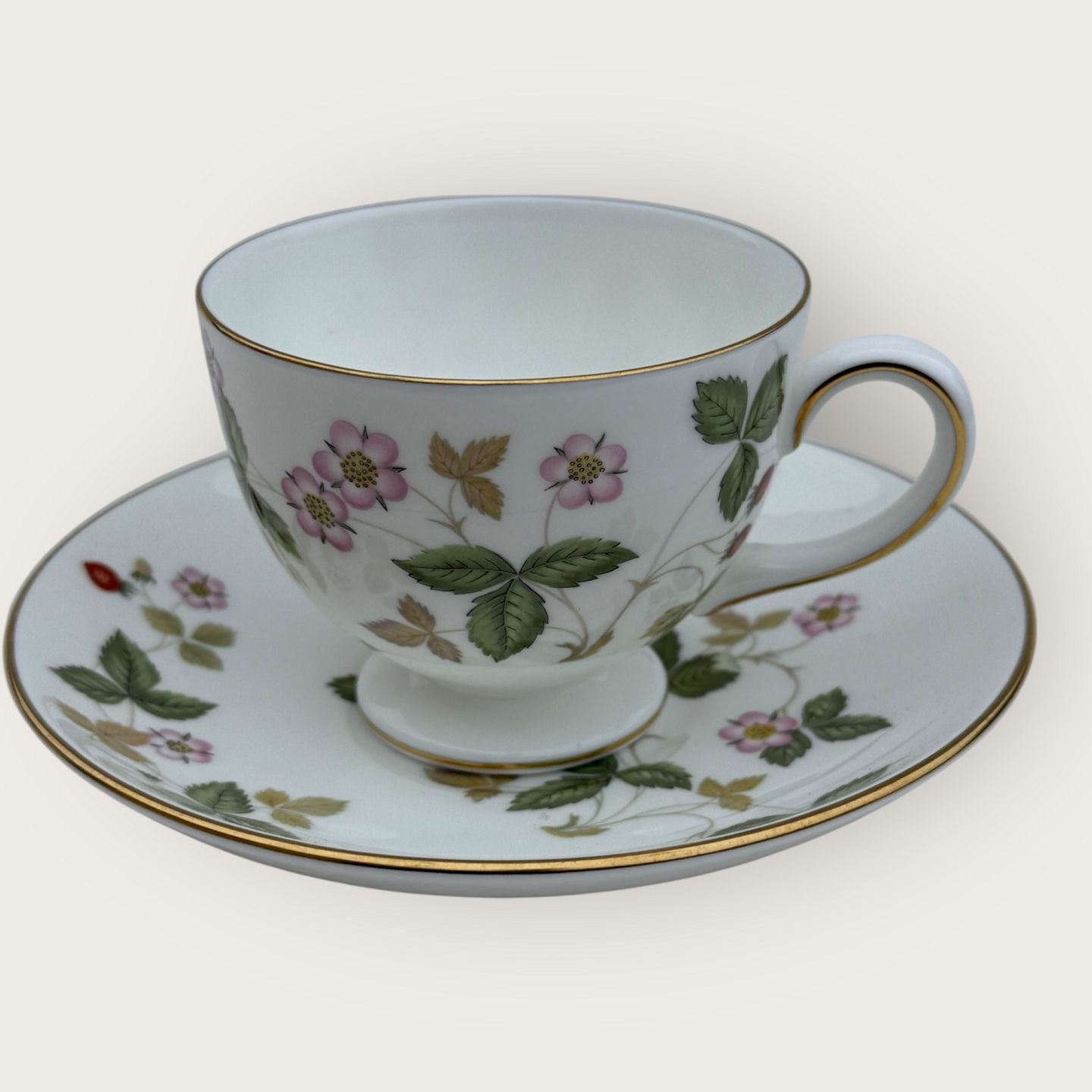 | Wedgwood, Walderdbeere / Wild Strawberry, Tasse mit Untertasse, Tassenmaße: Höhe 6,5 cm, Durchmesser 8,2 cm *Perfekter Zustand*