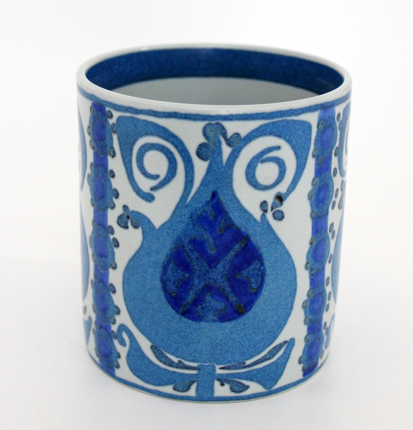 Text zugänglich auf Dänische: Royal Copenhagen, fajance, Stort årskrus 1969 med 925 sterlingsølv plaquette i bund. Kunstner Nils Thorson. Nr. 3135. Årskrusene er produceret fra 1967 og frem til 2014. Højde 11,5 cm. Diameter 10,5 cm. I. sortering. Flot stand. Pris: 500 kr. stk. Lager: 1