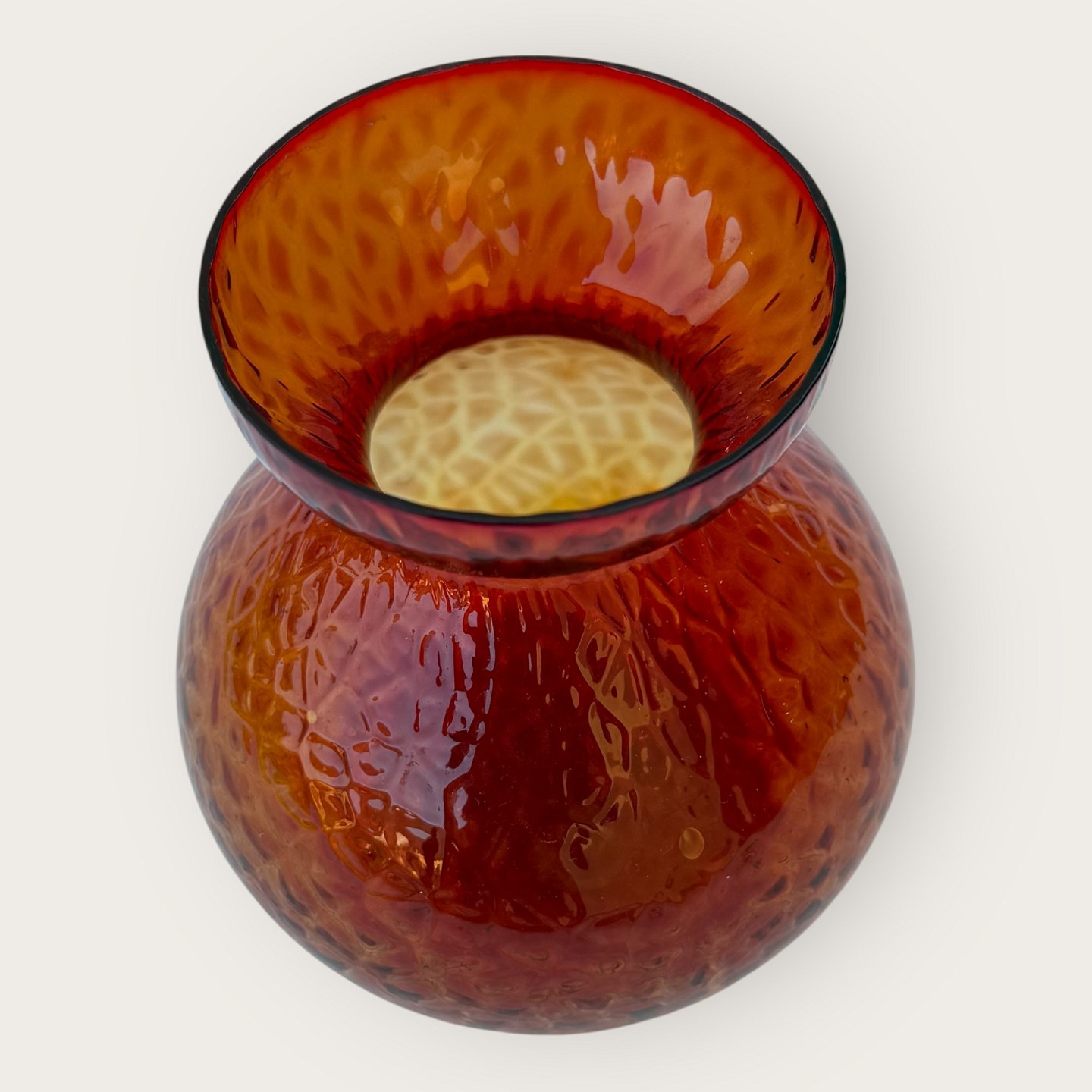 | Hyazinthenglas, Glasmanufaktur Fyens, Rot, mit rauer Oberfläche, 10 cm Durchmesser, 11 cm hoch *Guter Zustand*