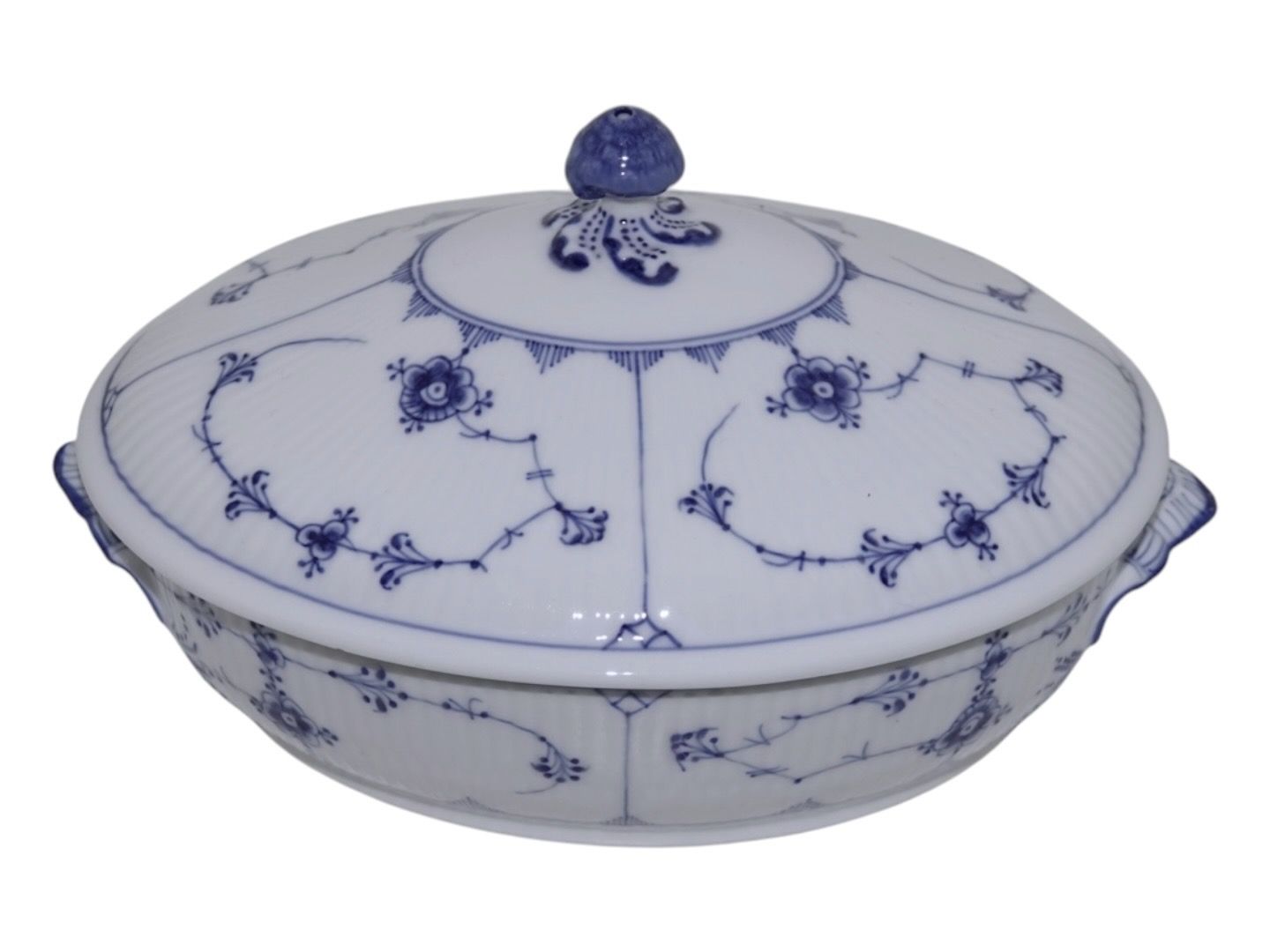 Royal Copenhagen Musselmalet Riflet, sjælden lille skål med låg (lille terrin).
