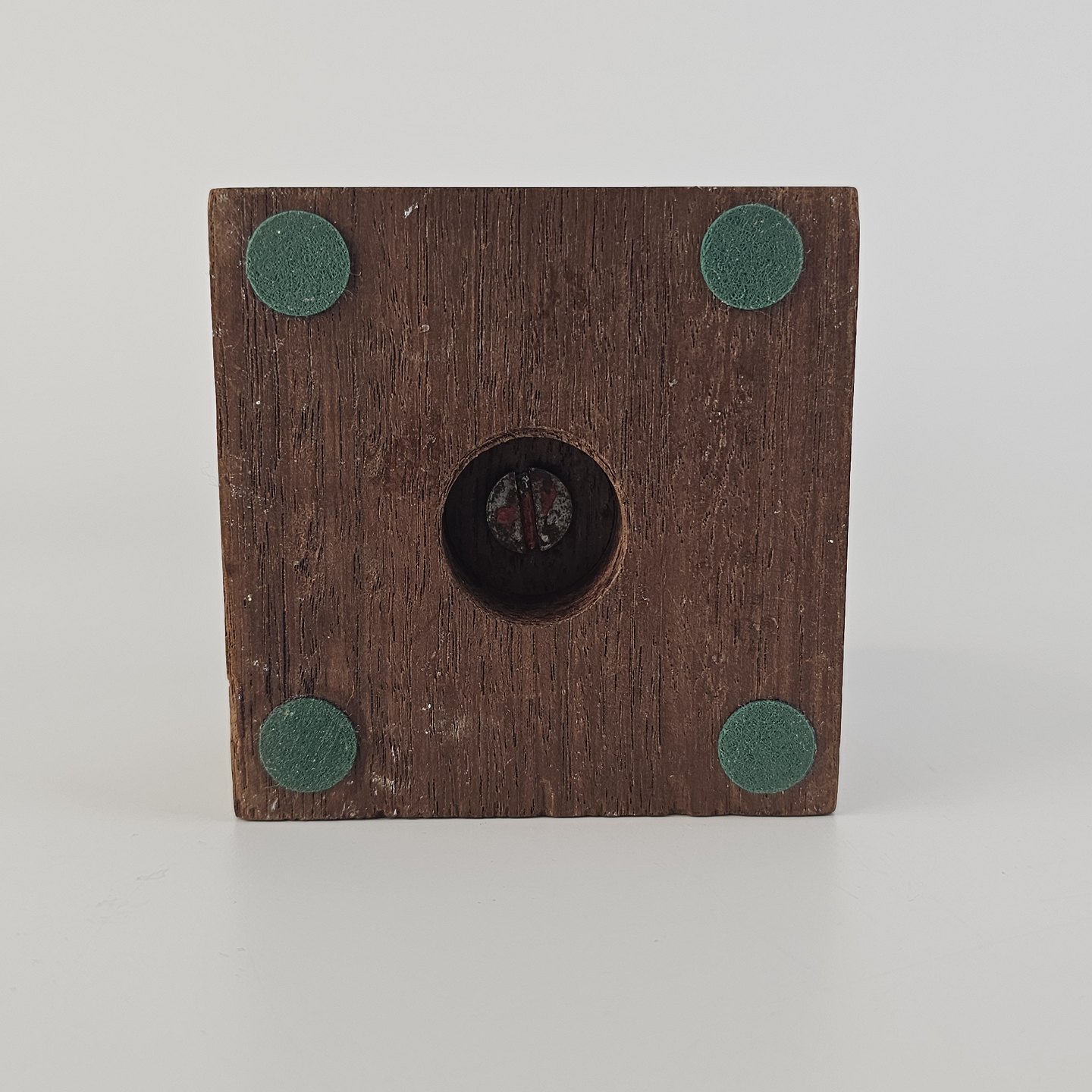 Figur med motiv af en kvinde på træsokkel, bruneret messing