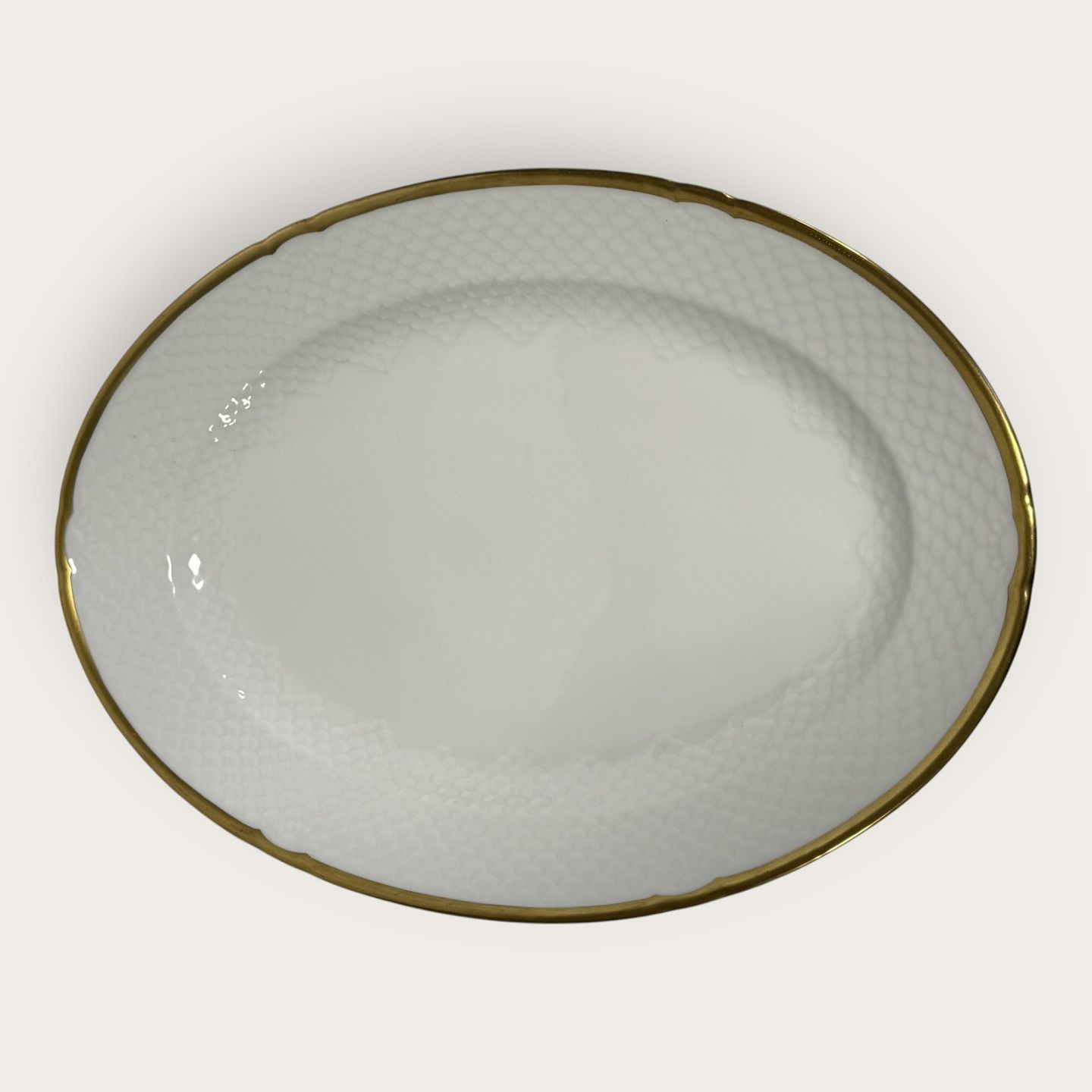 | Bing & Grondahl, Aakjær, Weißes Porzellan mit Goldrand, Große Servierplatte Nr. 15, 41 x 28,5 cm, 1. Wahl *Guter Zustand*