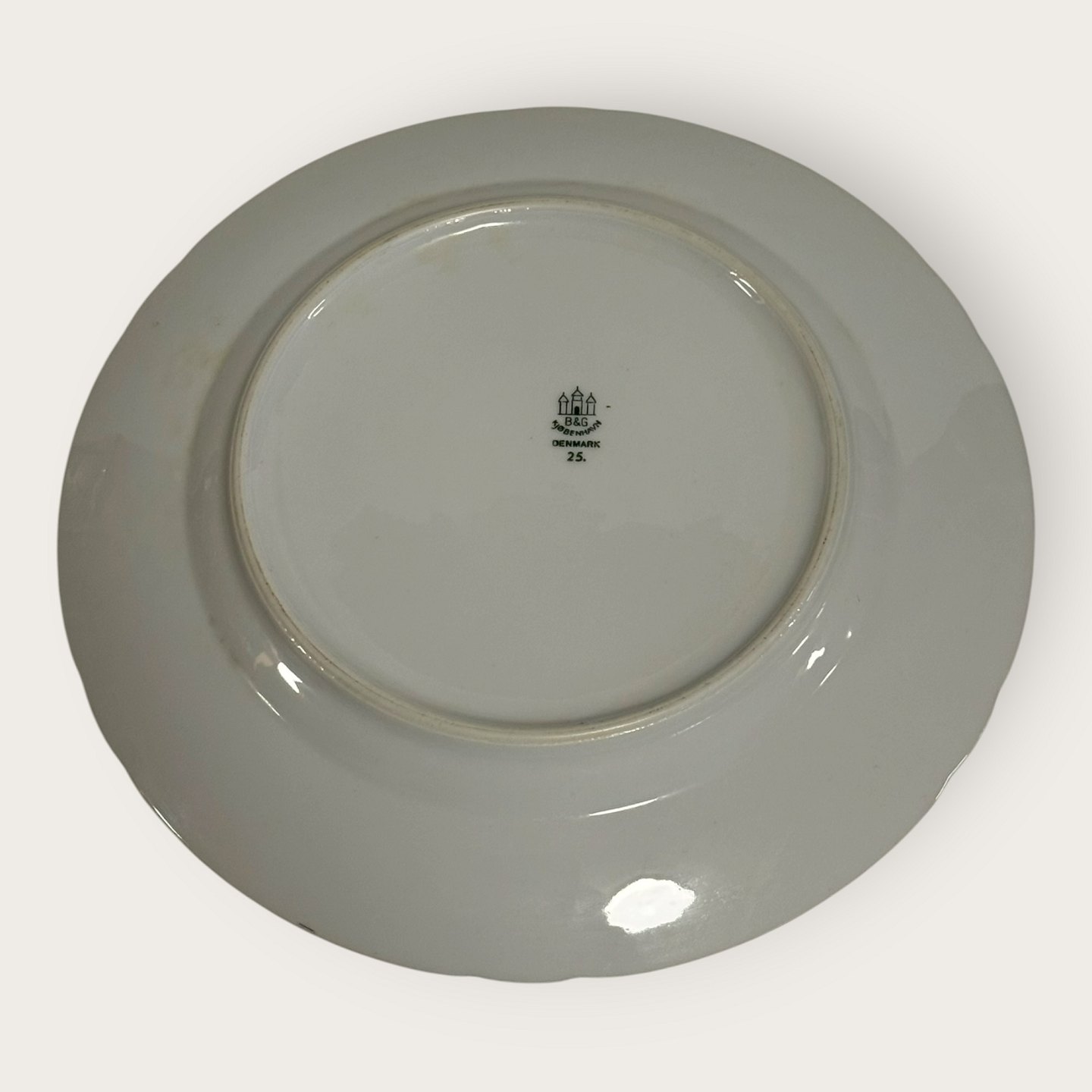 | Bing & Grondahl, Aakjær, Weißes Porzellan mit Goldrand, Speiseteller Nr. 25, 24,5 cm Durchmesser, 1. Wahl *Guter Zustand*