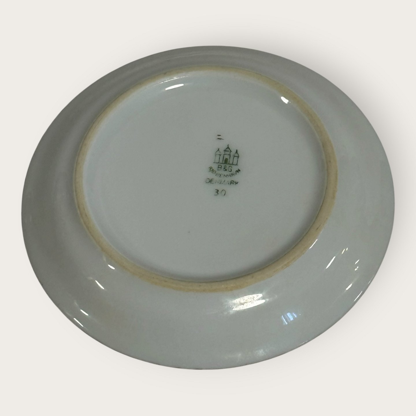 | Bing & Grondahl, Aakjær, Weißes Porzellan mit Goldrand, kleine Schale Nr. 30, 9,5 cm Durchmesser, 1. Wahl *Guter Zustand*
