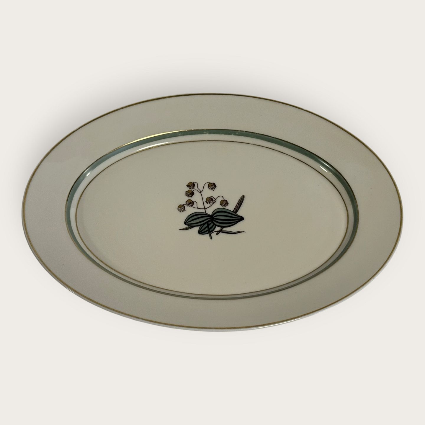 Royal Copenhagen, Heartgrass, ovale Schale Nr. 884/9583, 27,5 x 20,5 cm, Design Thorkild Olsen *Guter gebrauchter Zustand mit leichten Gebrauchsspuren am Goldrand*