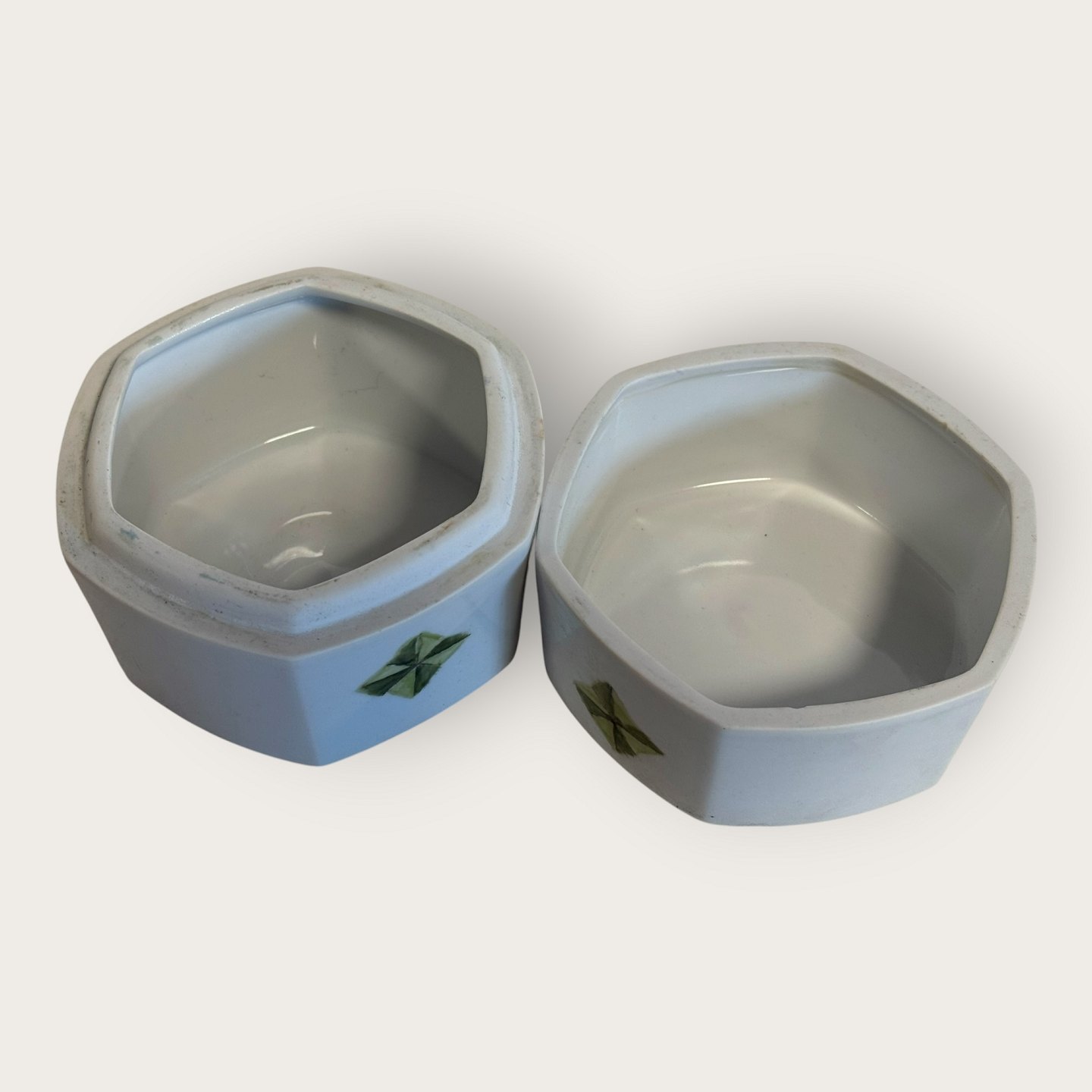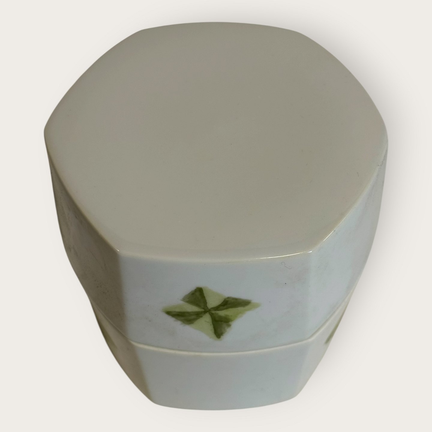 Bing & Grondahl, Einmachglas mit Deckel und grüner Verzierung, Nr. 5813, ca. 11 x 11 cm, *Einige sehr kleine Kratzer am Rand (siehe Foto), ansonsten guter Zustand*