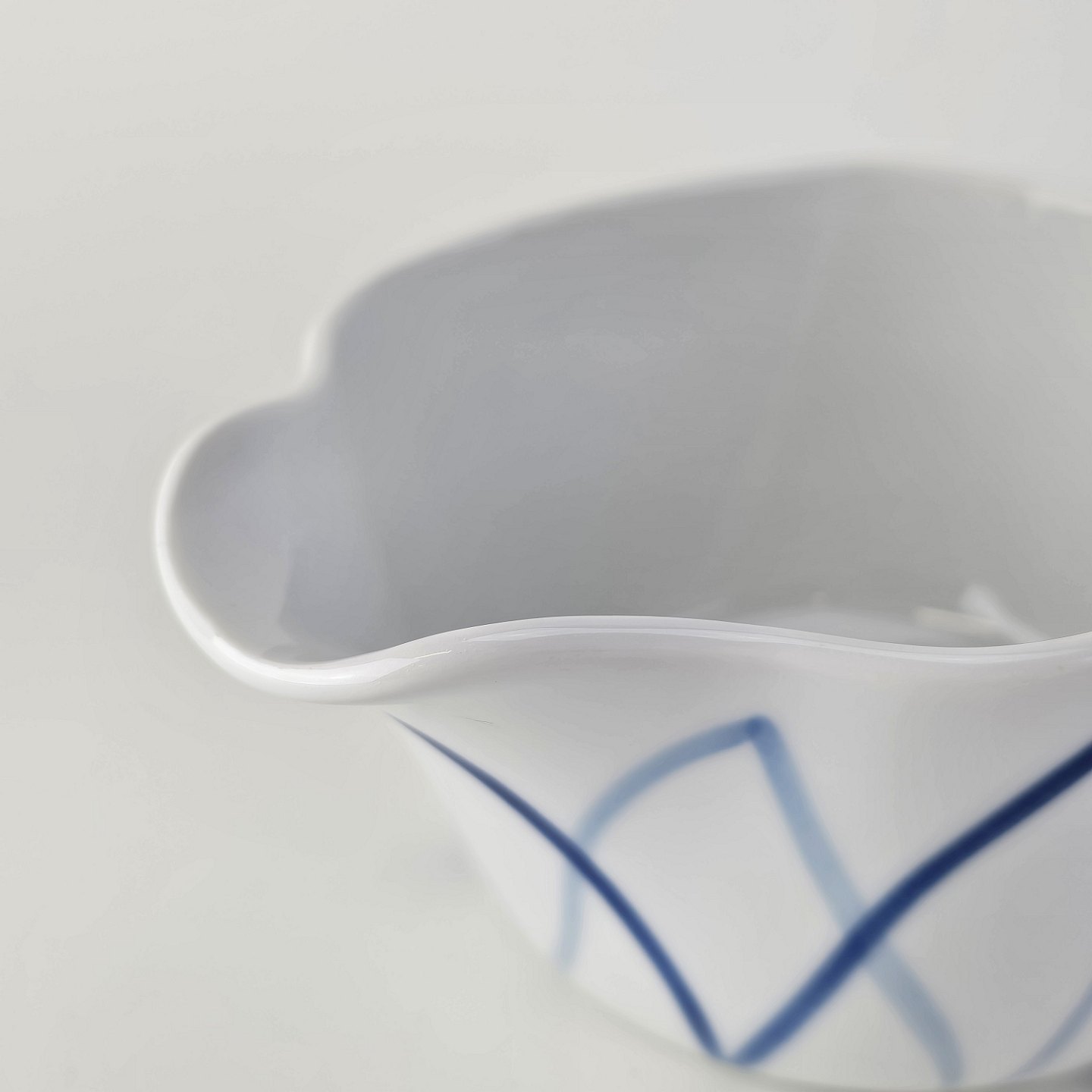 Blå Flamme er hvidt ildfast porcelæn dekoreret med blå striber, der ligner flammer.