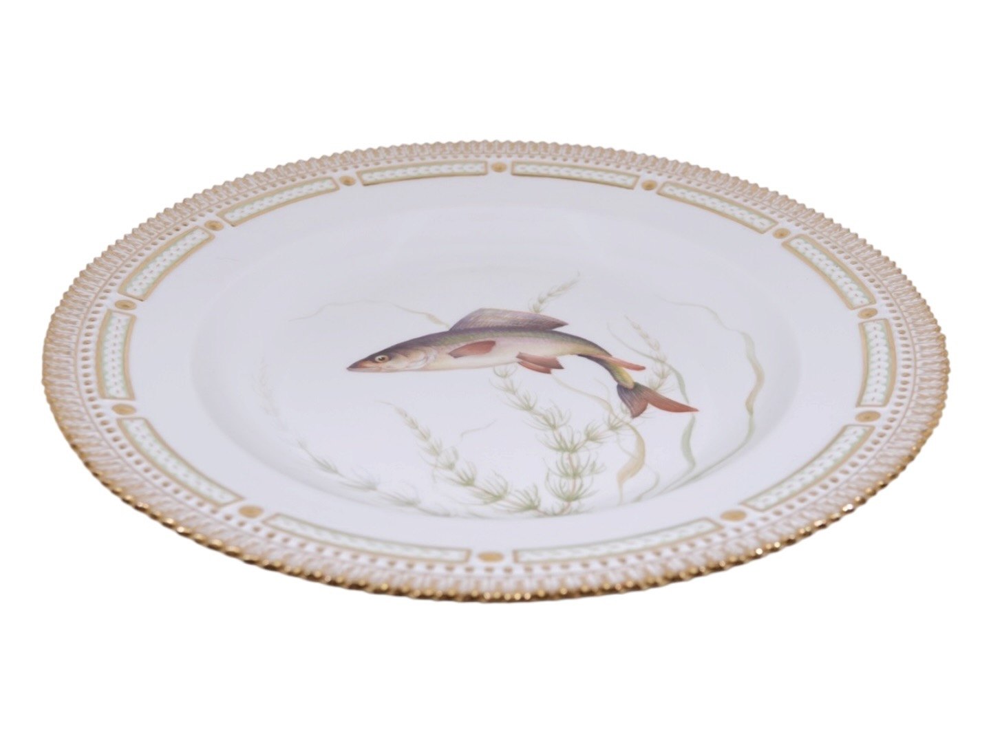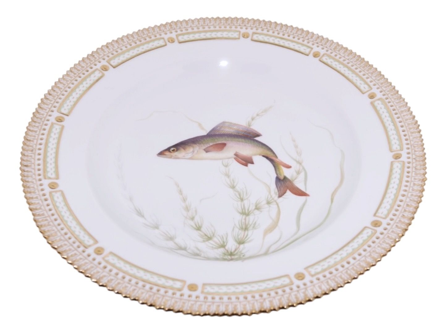 Royal Copenhagen Flora Danica, middagstallerken dekoreret med fisk.