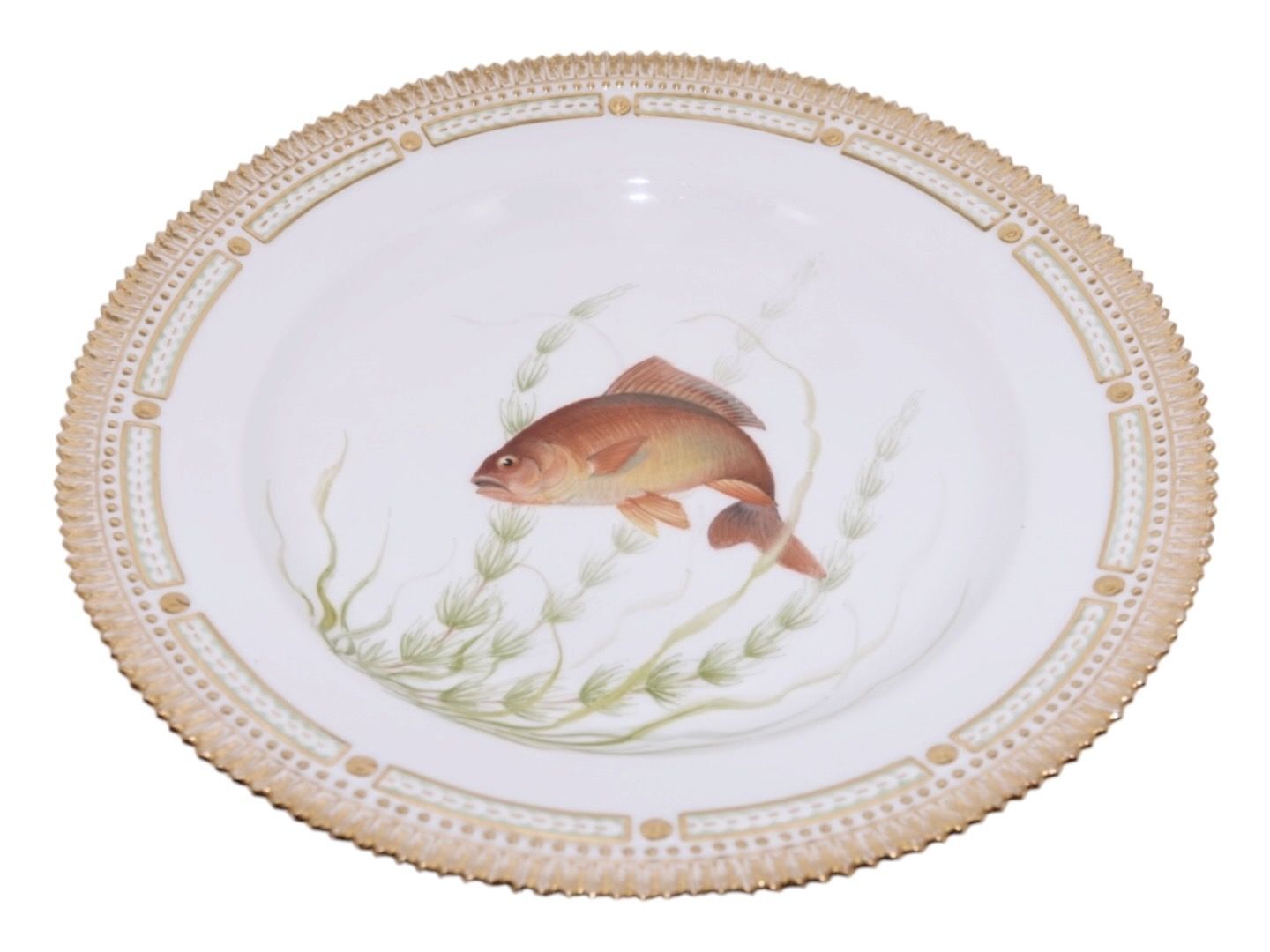 Royal Copenhagen Flora Danica, middagstallerken dekoreret med fisk.