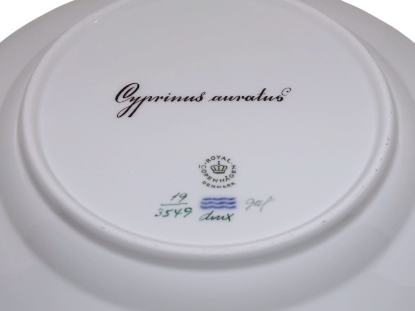 Dekoreret med fisk "Cyprinus auratus", som er "Guldfisk" på dansk.