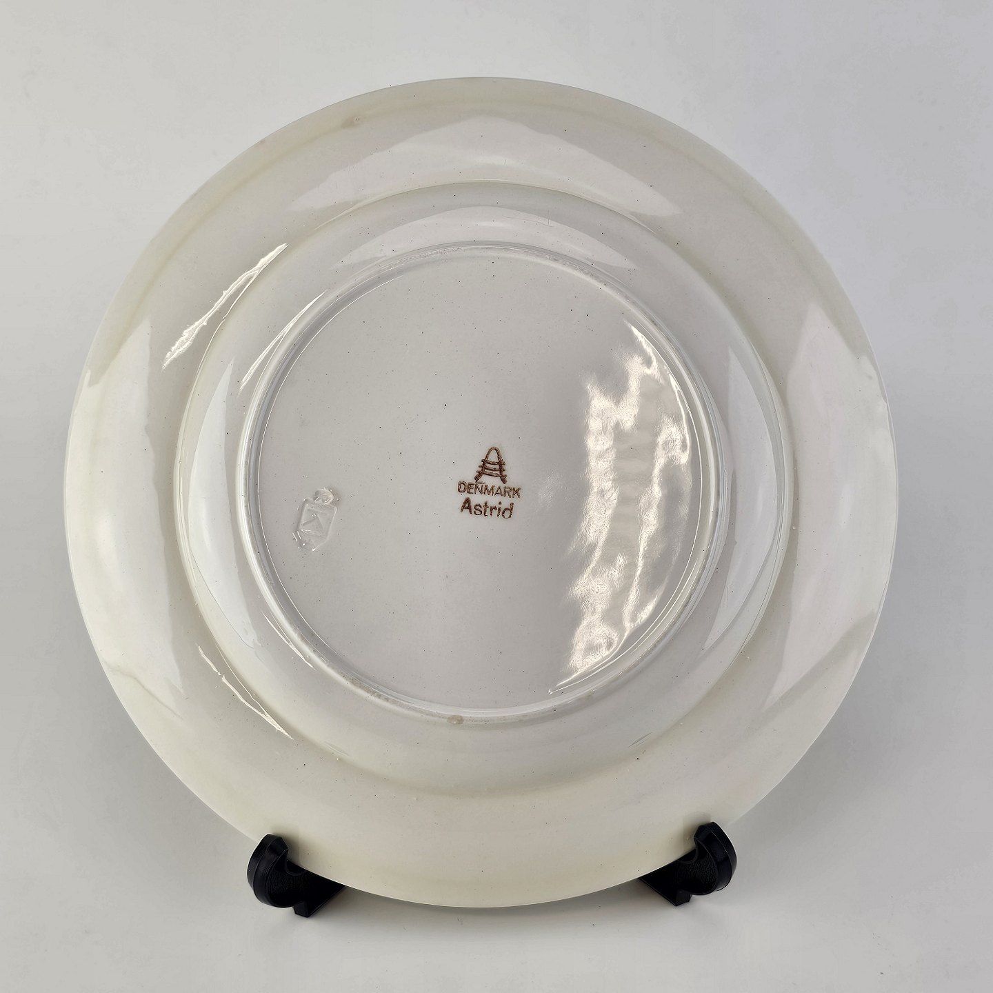 Flad tallerken i fajance fra stellet Astrid fremstillet i perioden 1937-1958