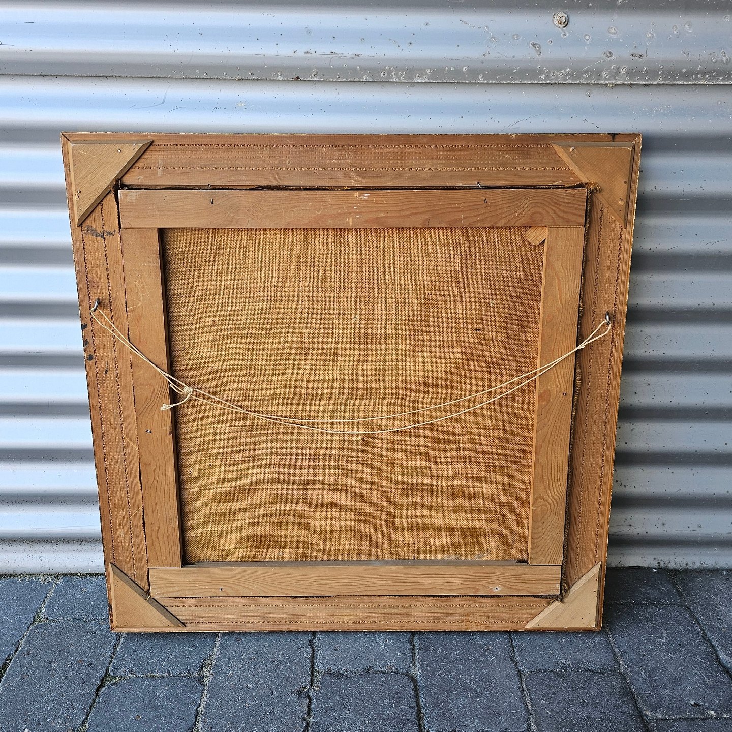 Oliemaleri på lærred monteret i guldramme med motiv af skibe på en strand