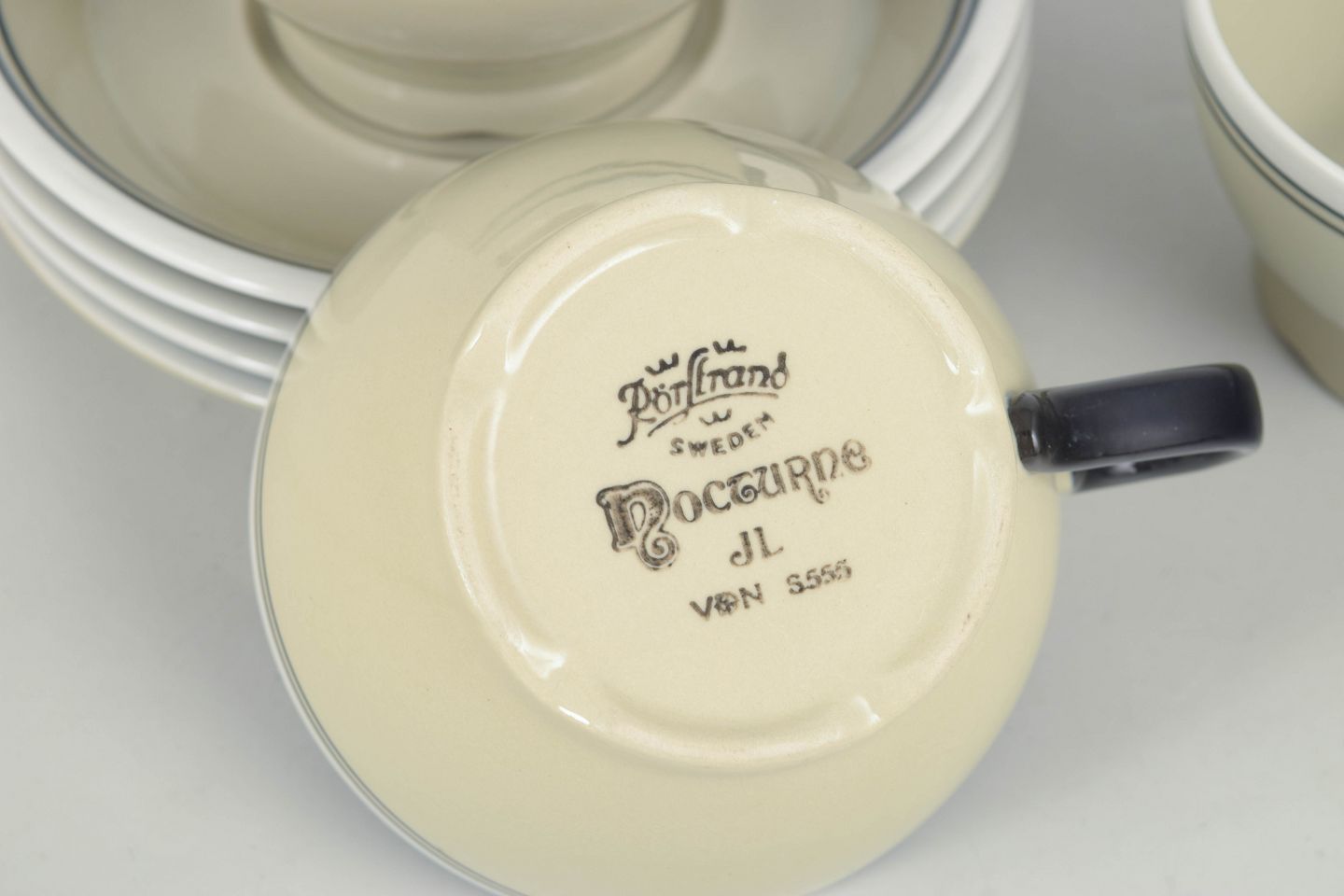 Text zugänglich auf Dänische: Jackie Lynd for Rörstrand, sæt af fire tekopper med tilhørende underkopper “Nocturne”.