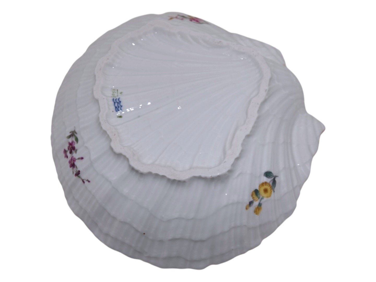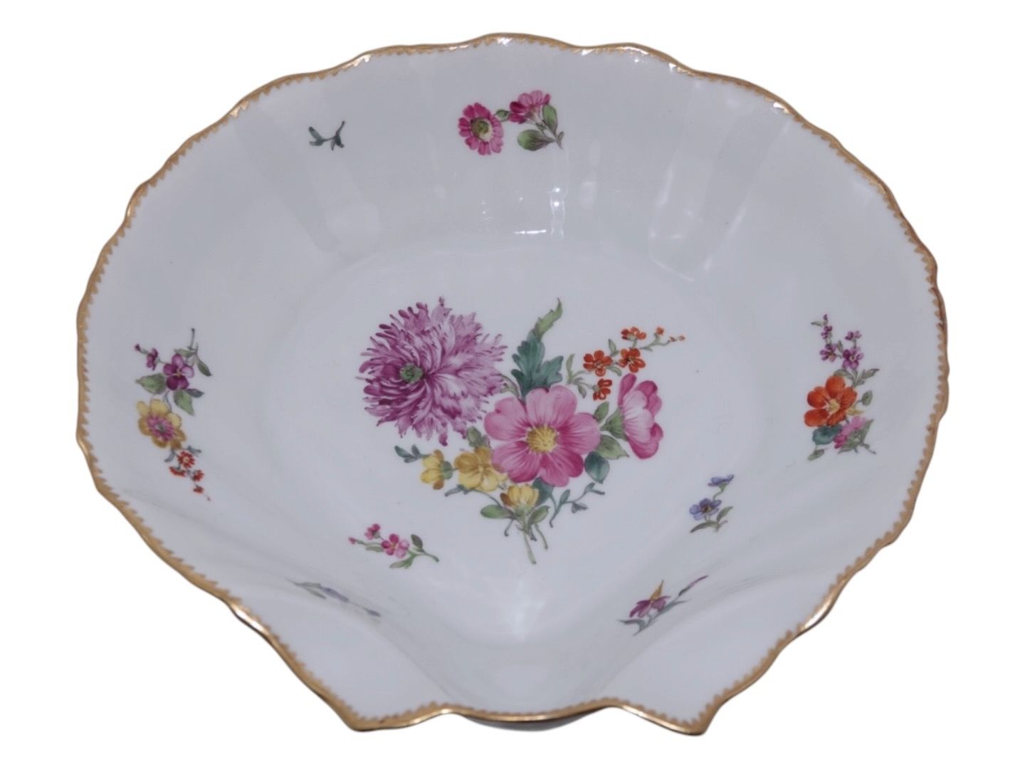 Royal Copenhagen Fuld Saksisk Blomst, sjælden set muslingformet skål.